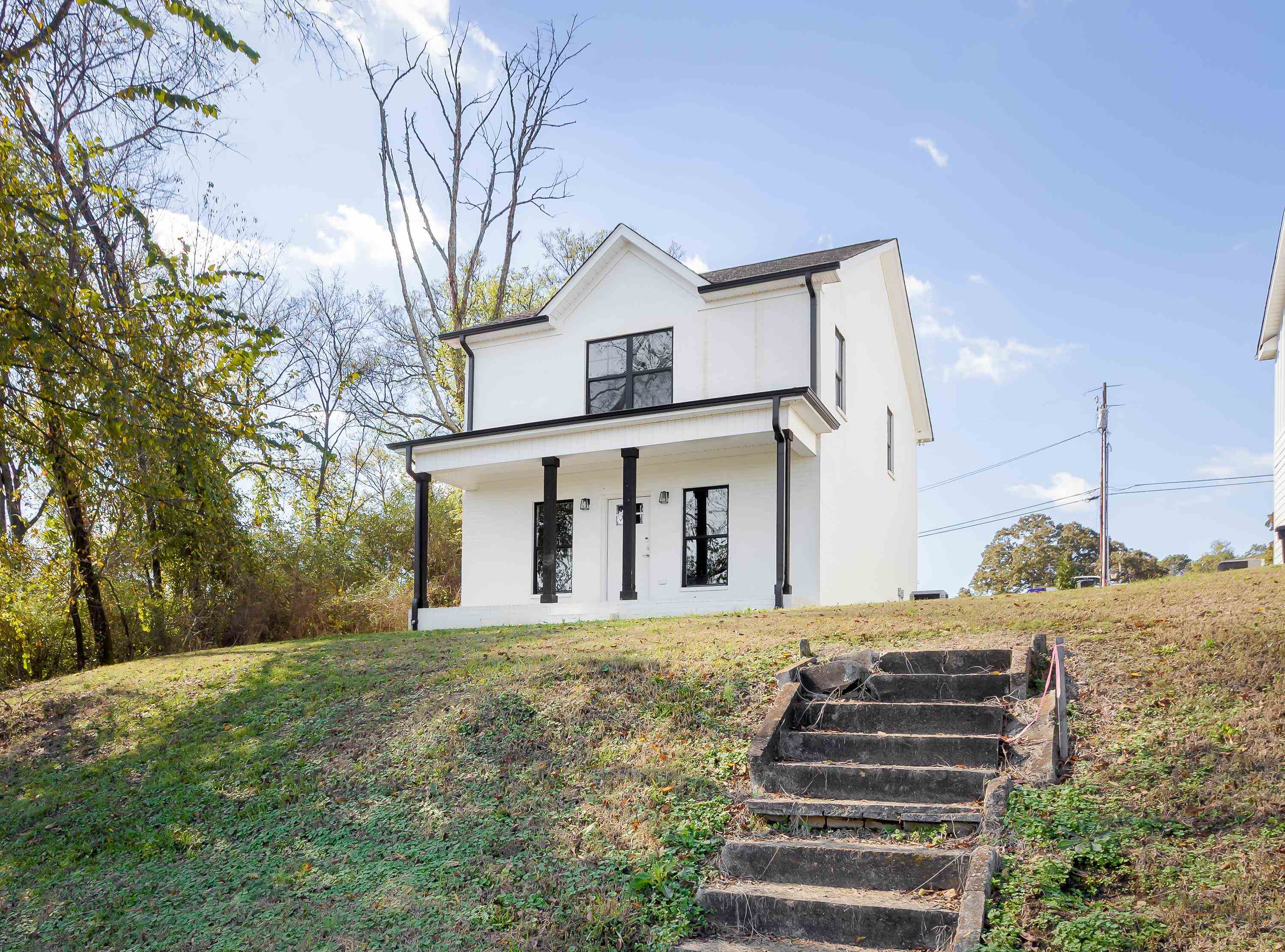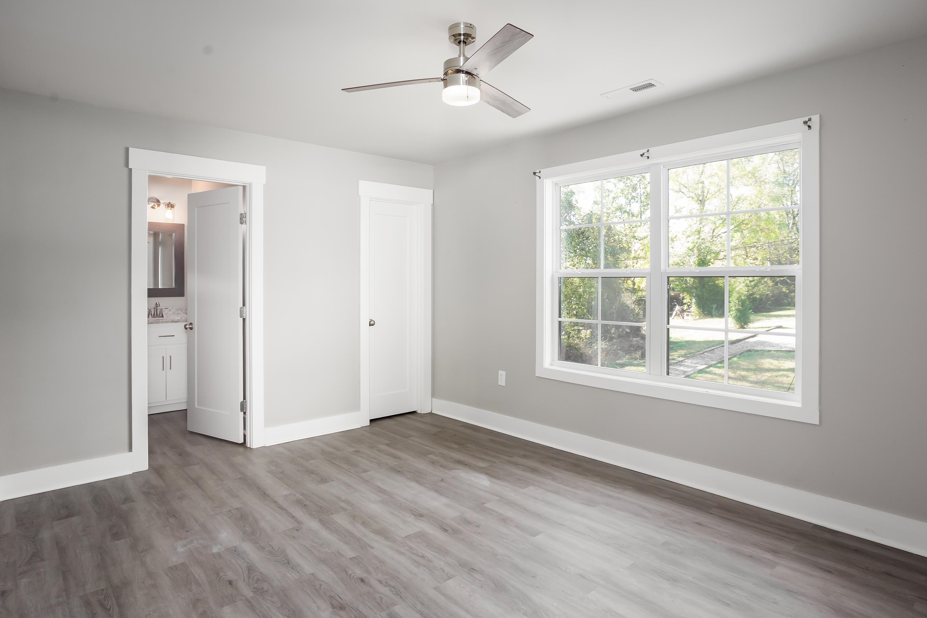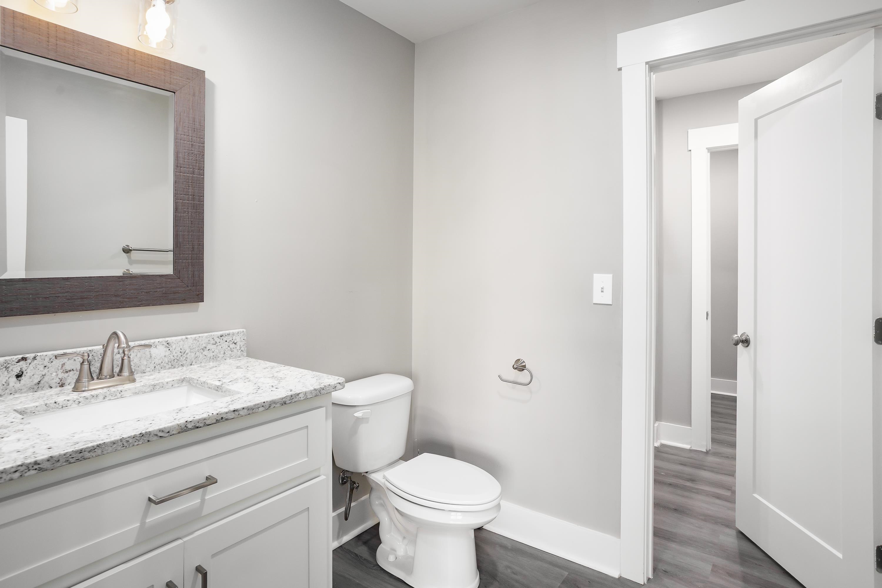 Welcome to 213 Virginia Ave, a modern farmhouse in the heart of Florence. This 3 bedroom, 2.5 bath home features clean, contemporary design and a bright open-concept layout. The main level offers a spacious living area and a stylish kitchen with granite countertops, stainless steel appliances, beautiful cabinetry, and a large island perfect for gathering. The primary suite is conveniently located on the main floor, offering privacy and comfort with an en-suite bath and walk-in closet. Luxury plank flooring flows throughout the main level, and the modern staircase adds a sleek architectural touch. Upstairs are two additional bedrooms and a full bath, ideal for family, guests, or a home office. The exterior showcases bright brick, black accents, and a covered front porch with timeless curb appeal. Located just minutes from downtown Florence, UNA, parks, and local dining. Move-in ready and easy to love—schedule your showing today!