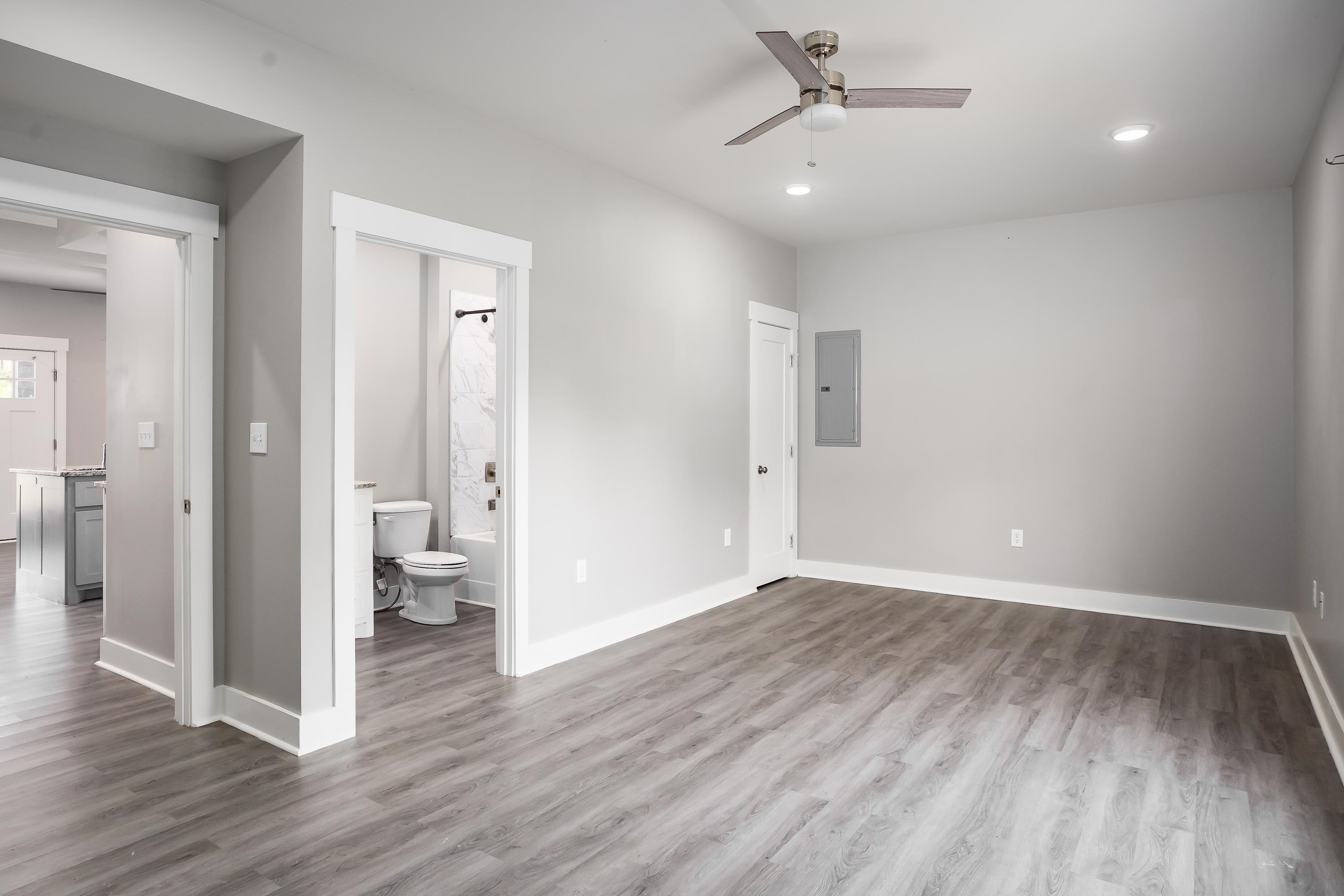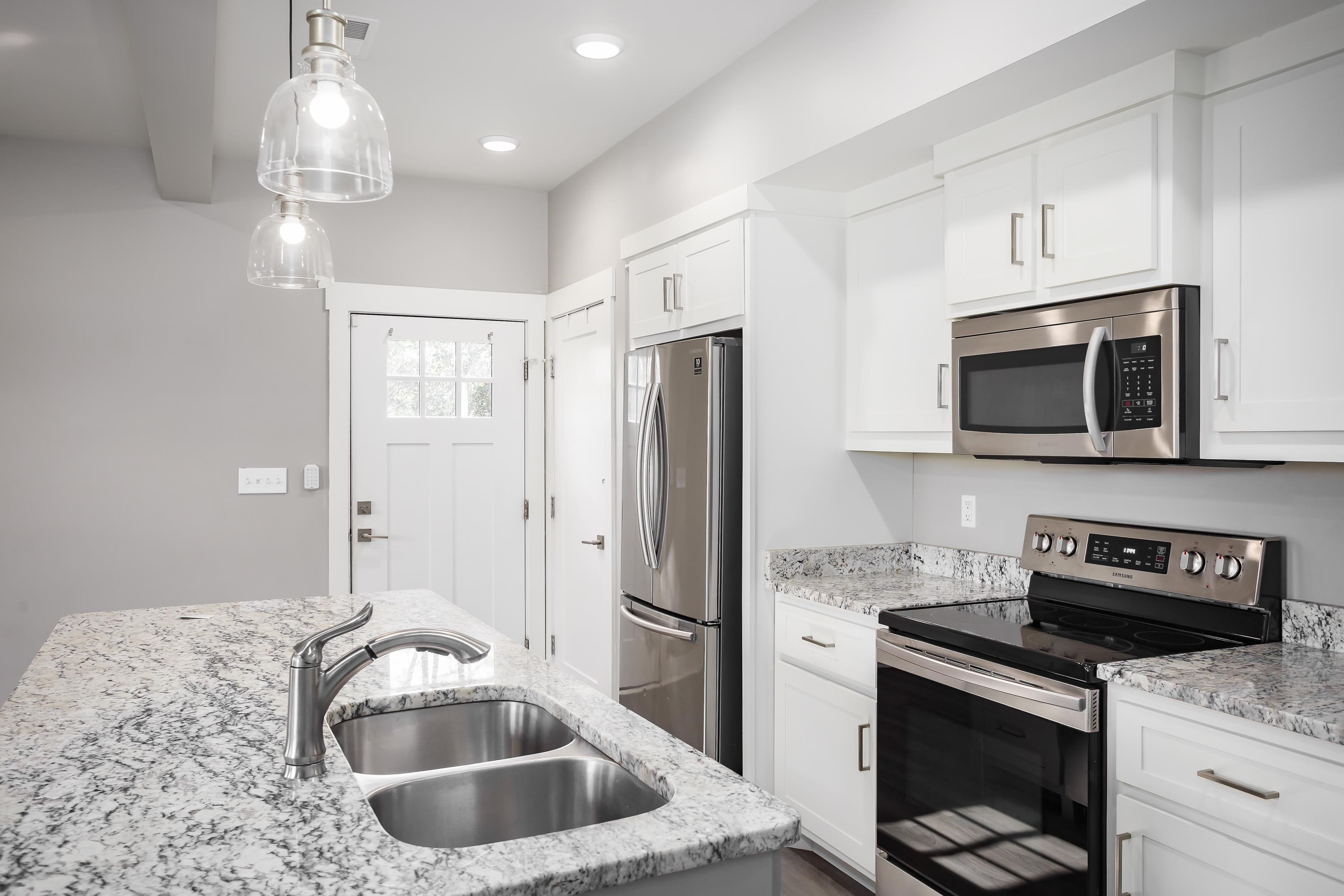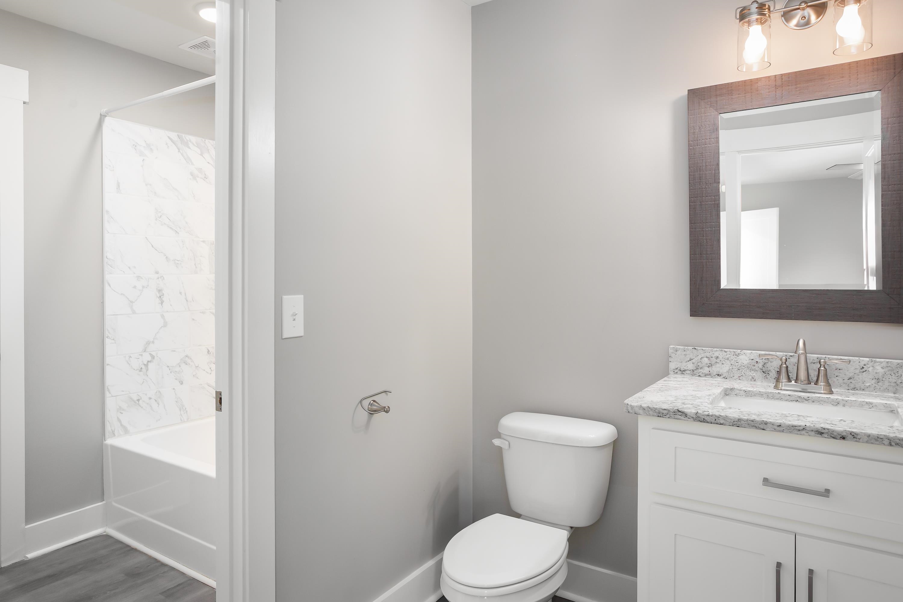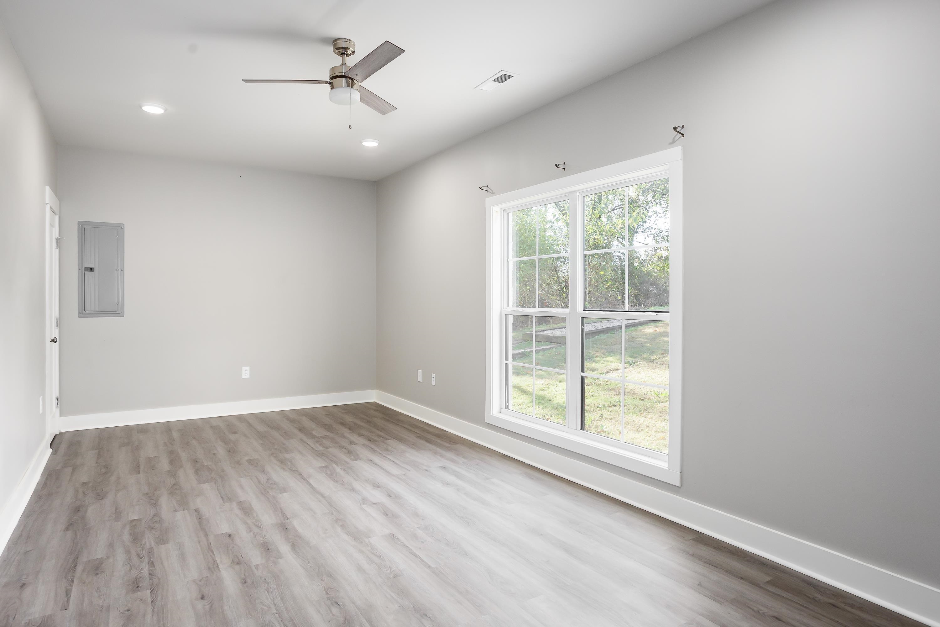 Welcome to 213 Virginia Ave, a modern farmhouse in the heart of Florence. This 3 bedroom, 2.5 bath home features clean, contemporary design and a bright open-concept layout. The main level offers a spacious living area and a stylish kitchen with granite countertops, stainless steel appliances, beautiful cabinetry, and a large island perfect for gathering. The primary suite is conveniently located on the main floor, offering privacy and comfort with an en-suite bath and walk-in closet. Luxury plank flooring flows throughout the main level, and the modern staircase adds a sleek architectural touch. Upstairs are two additional bedrooms and a full bath, ideal for family, guests, or a home office. The exterior showcases bright brick, black accents, and a covered front porch with timeless curb appeal. Located just minutes from downtown Florence, UNA, parks, and local dining. Move-in ready and easy to love—schedule your showing today!