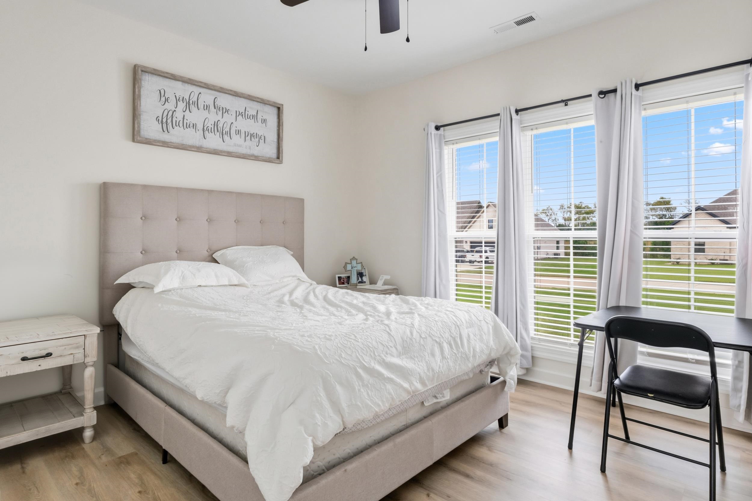 Built just one year ago, this beautiful 4 bedroom, 2 full bath home offers the perfect blend of modern style, comfortable living, and convenient location. This home features tall ceilings, custom finishes, and an open-inviting layout. One of the 4 bedrooms serves as a large bonus room upstairs! Step outside to enjoy the nice backyard and patio area, perfect for entertaining or relaxing!