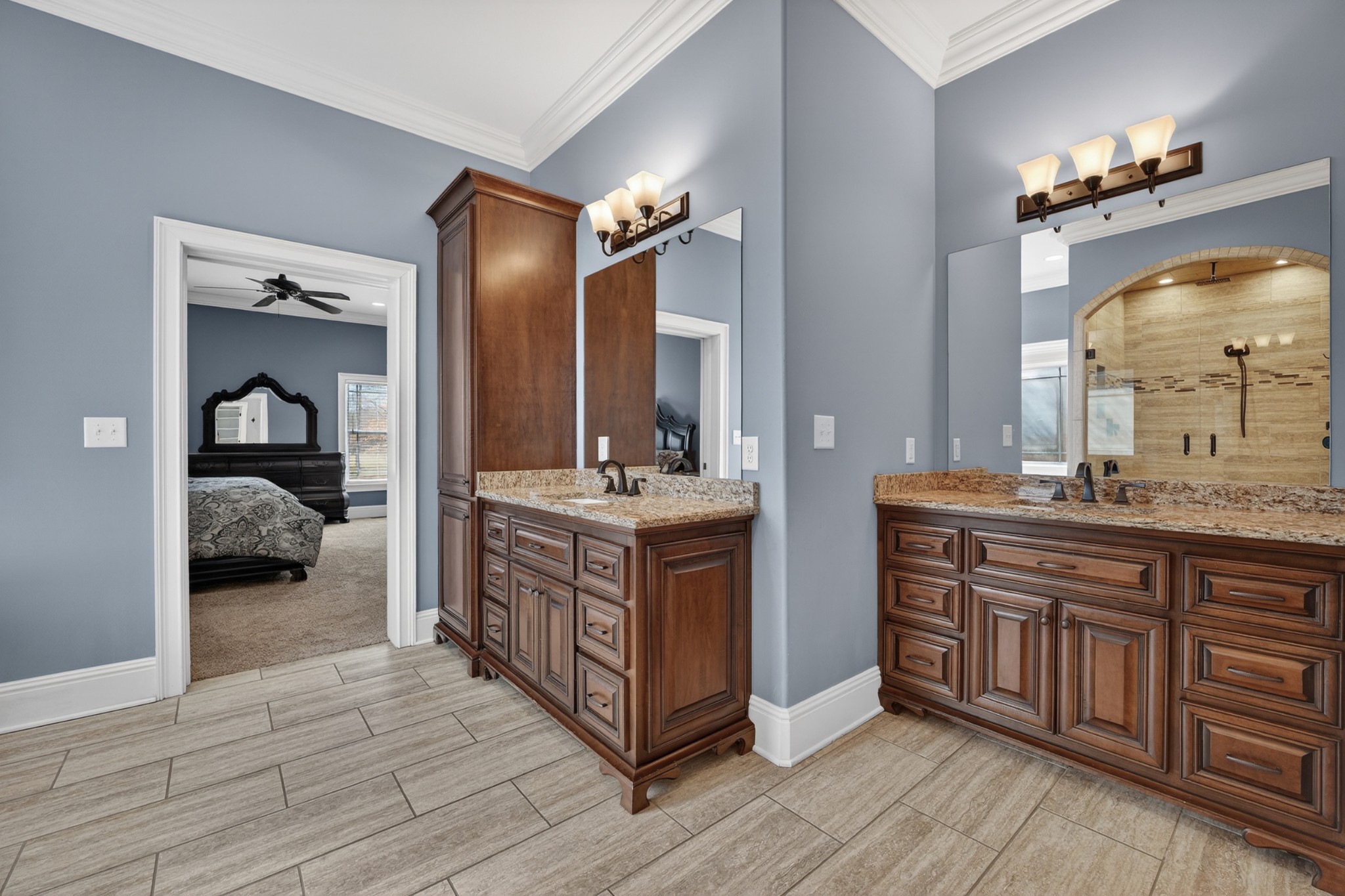 Custom-built by the builder as his personal residence, this executive home has a European inspired architectural presence and reflects superior craftsmanship and intentional design at every turn. Positioned on 1.5 acres at the end of a cul-de-sac, the setting offers both prestige and privacy. From the moment you enter, extensive trim detail, bullnose corners, granite countertops and rich hardwood floors establish a tone of understated luxury. The grand living room showcases soaring ceilings and a striking fireplace, makes a statement while maintaining warmth and livability. You will be called to gather and dine in the formal dining room featuring tall, coffered ceilings. Downstairs, the secluded primary suite is thoughtfully designed as a private retreat, featuring a spa-caliber en-suite with an oversized tiled shower, soaking tub, and an expansive walk-in closet complete with custom built-ins. You will also find a 2nd bedroom and full bath on the opposing side. The chef’s kitchen is appointed with upgraded appliances, granite countertops, large prep island, ample cabinets, pull out pantry and spice racks and seamlessly integrates with the main living areas, ideal for refined entertaining and everyday comfort. Generously scaled secondary bedrooms and two versatile upstairs bonus spaces provide flexibility for executive office space, media lounge, fitness studio, or additional gathering areas. Outdoors, the covered porch and extended patio overlook the grounds with ample room to construct a detached garage or custom shop. A three-car, attached garage completes this distinguished property. The Location is superior for those looking to work in or near Huntsville, Alabama with only a 3 min. drive to the Alabama state line. Enjoy the benefits of living in Tennessee.