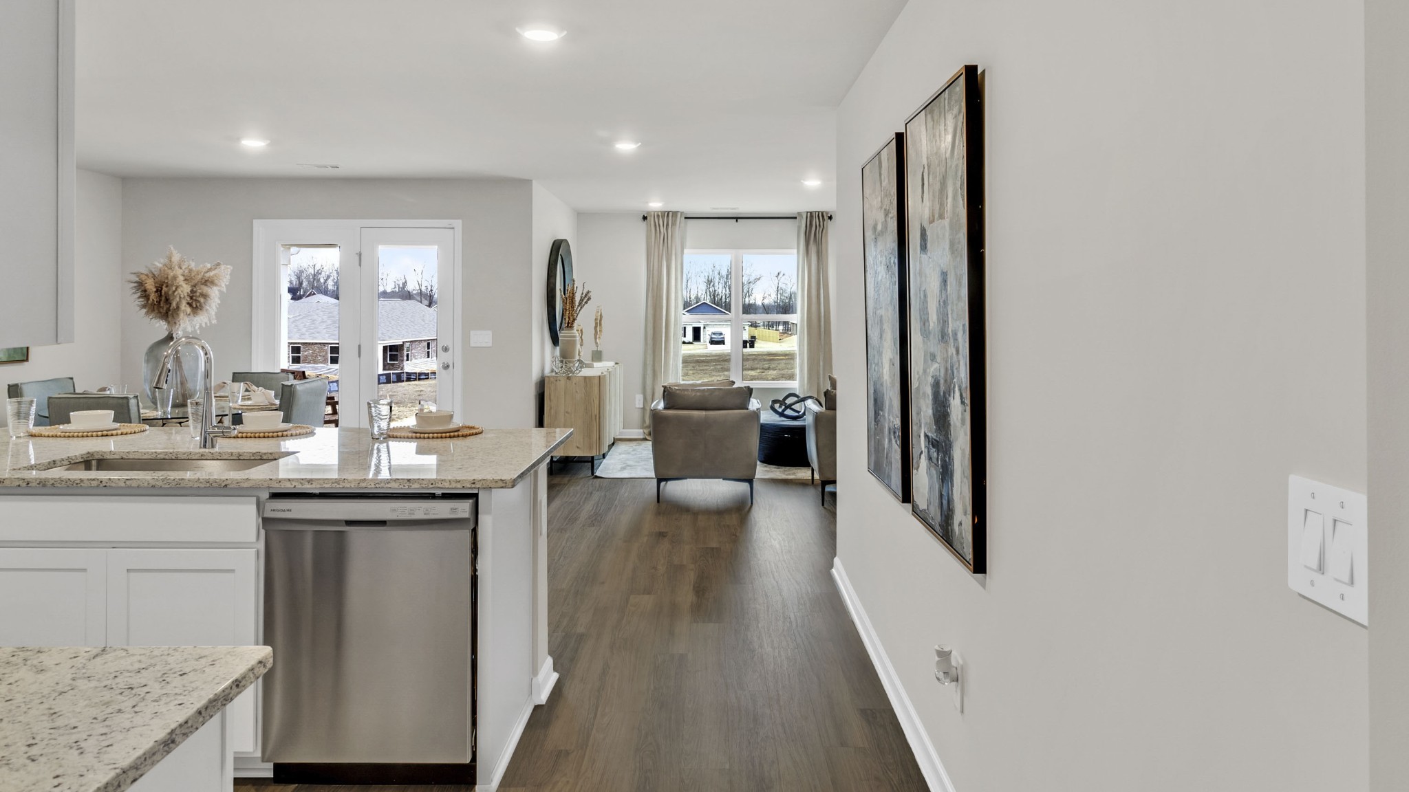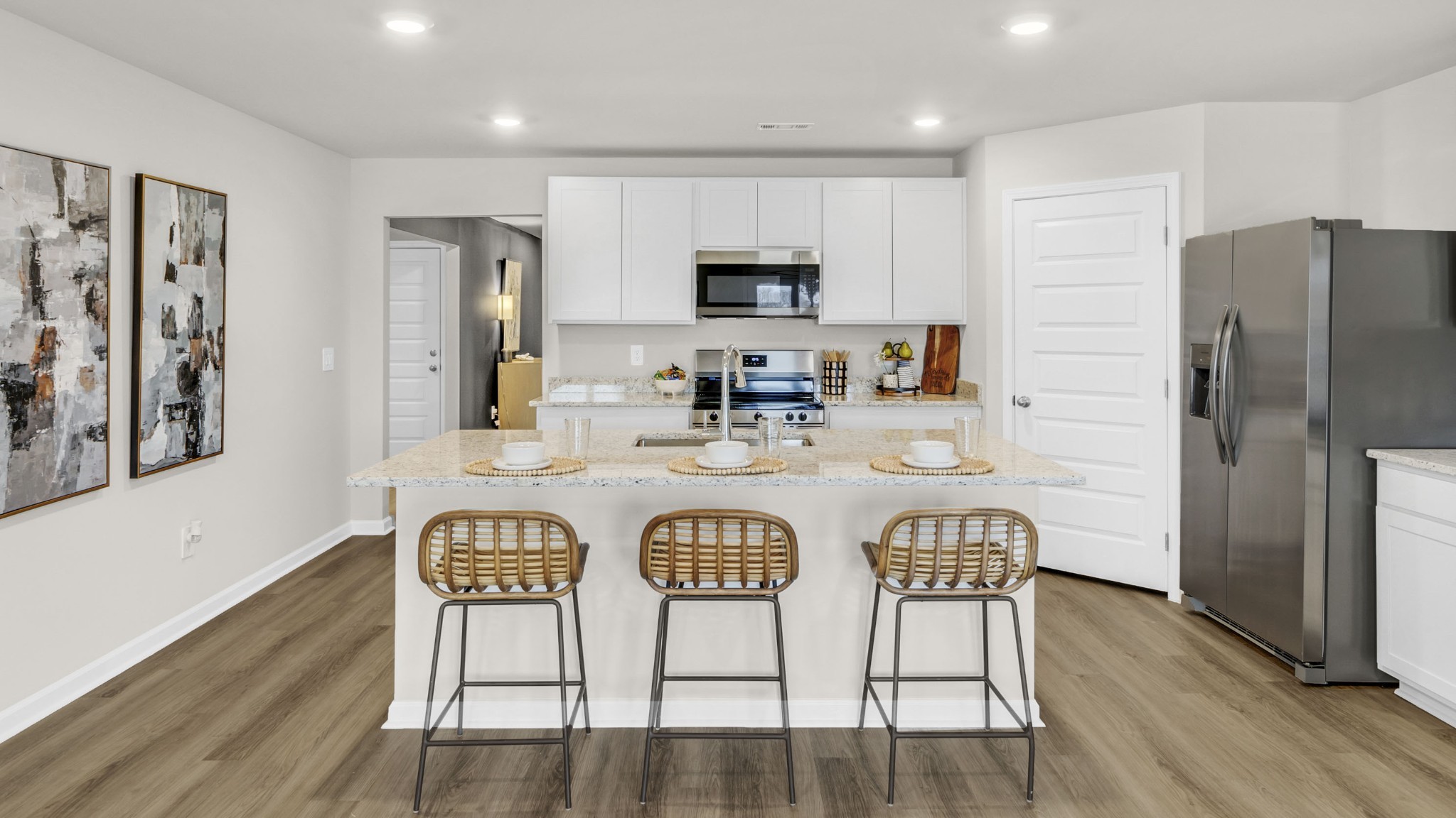MOVE-IN READY! Discover the popular Cali floorplan with 4-bedrooms, 2-bathrooms, and 1,841 sq ft of space. Two front bedrooms share a bath, while another is perfect for guest or an office. Enjoy an open concept kitchen, dining, and great room with granite or quartz counters, stainless appliances, and a corner pantry. Smart home features in the Home is Connected package offer added convenience, This home blends comfort, style, and function - ideal for modern living. Photos are representational.