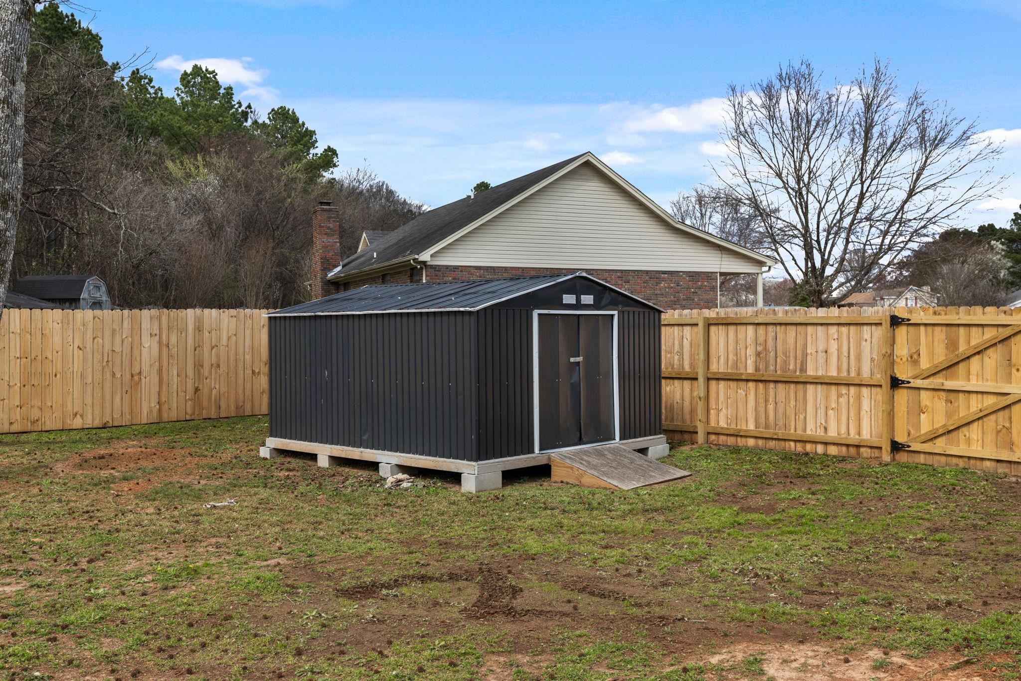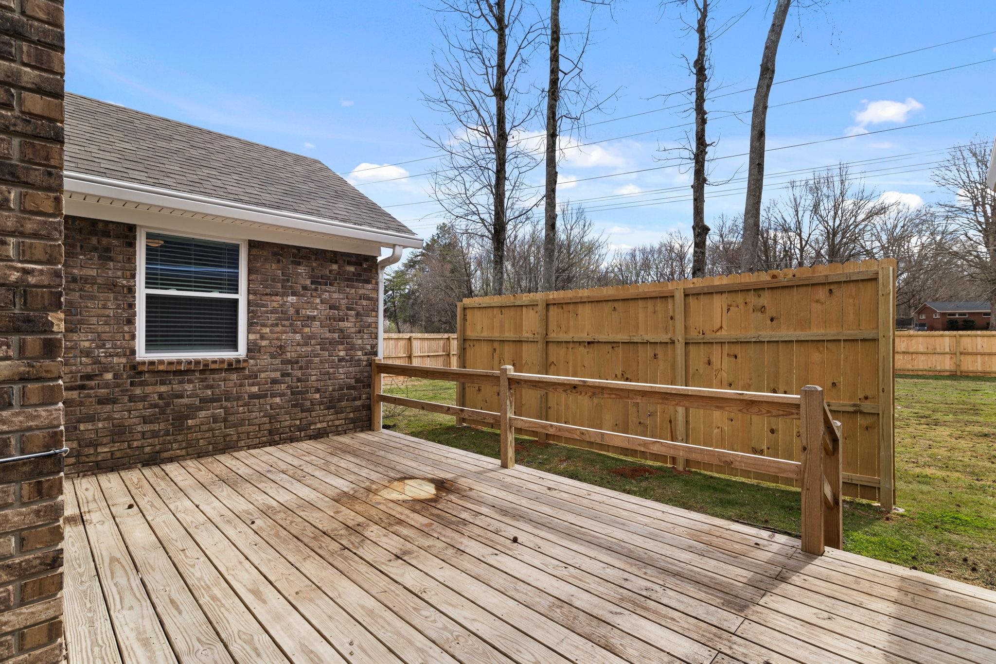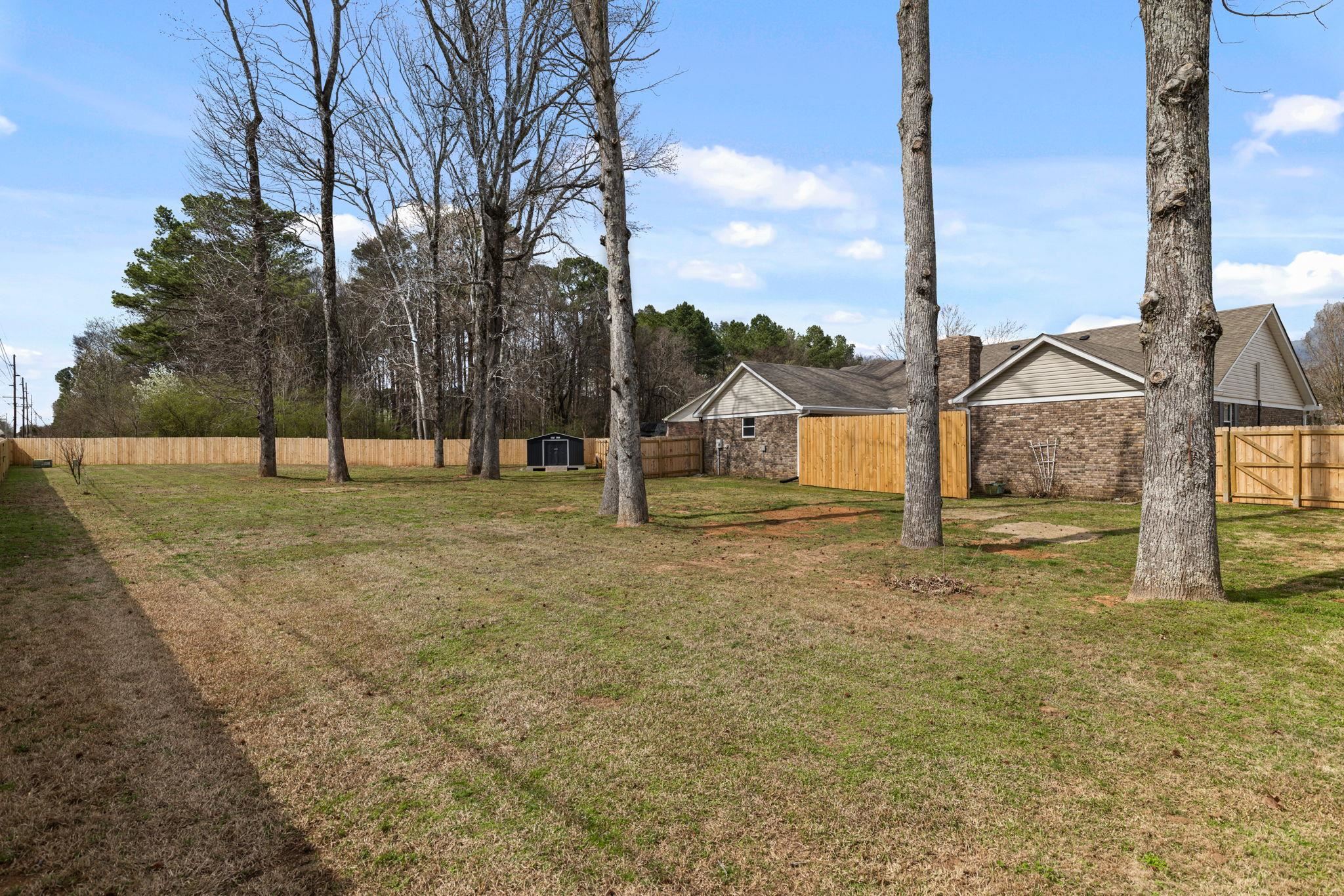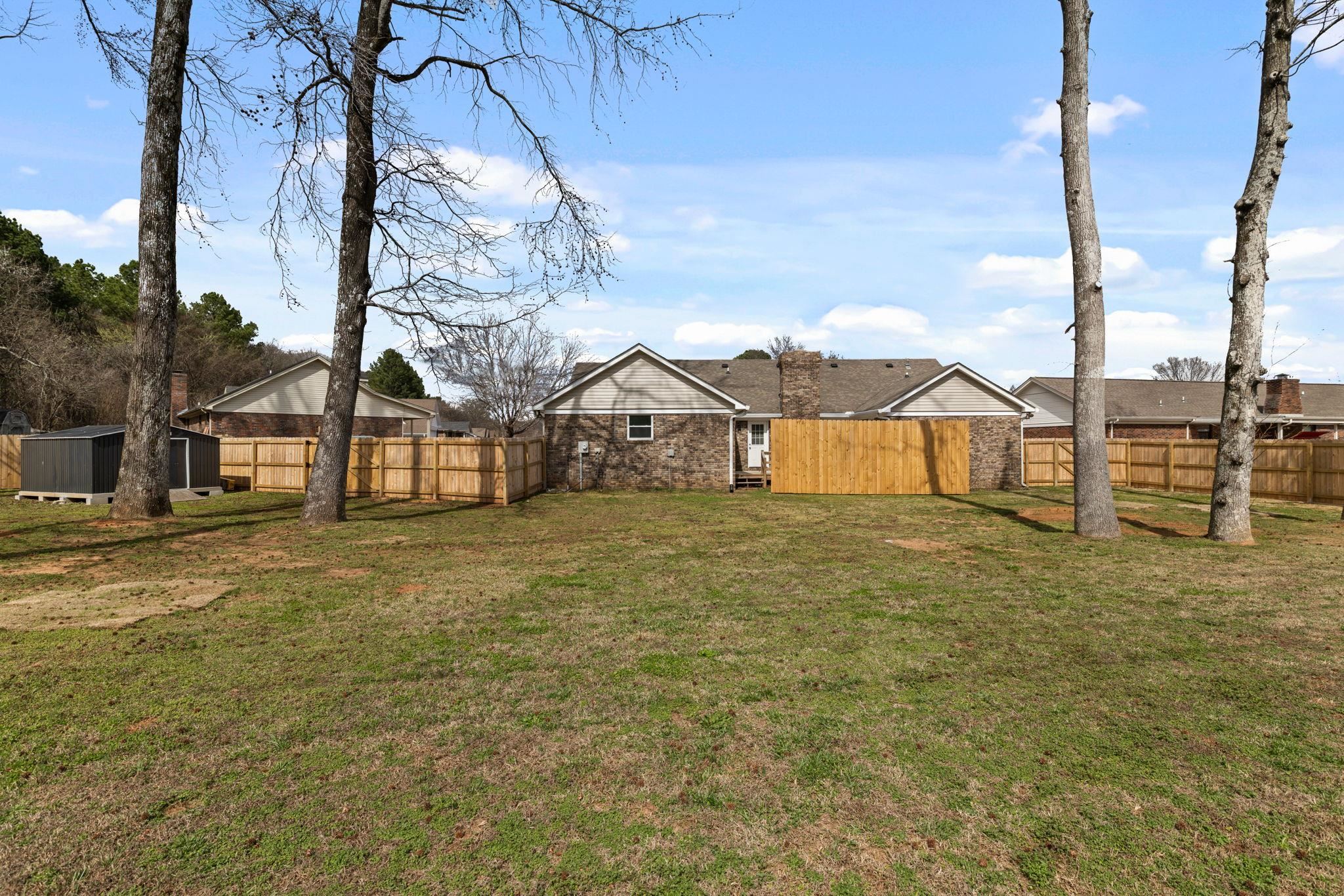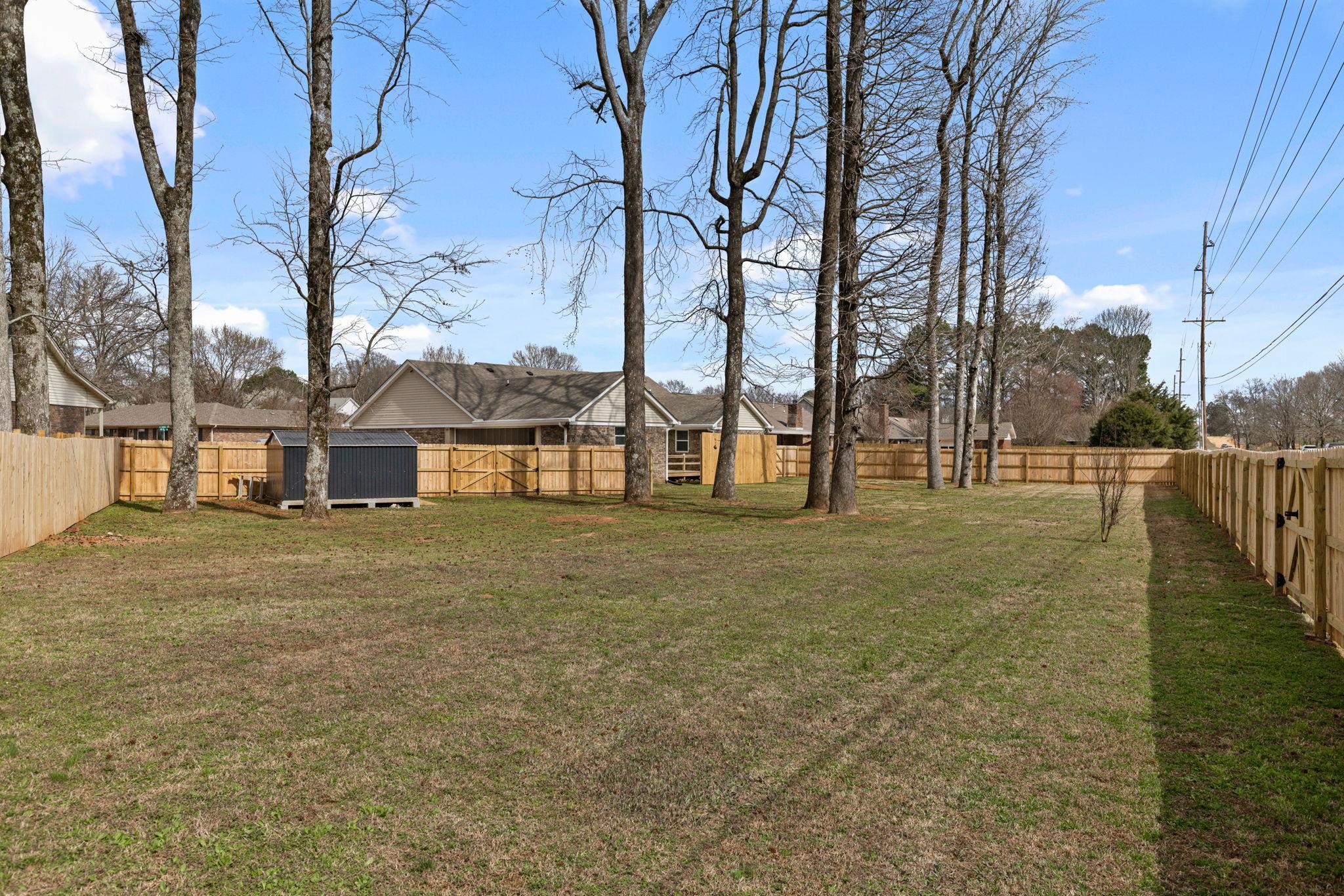 Don't wait! This 4 BR, 2 BA home won't last! Features include approx 1,834 sq ft., spacious single-level floor plan, living room w/ vaulted ceilings & exposed beams, recessed lighting, fireplace, kitchen w/ ample cabinetry, stainless appliances, good counter space, and a functional layout that flows into the dining area. Additional features include updated flooring, neutral paint colors, crown molding, and lots of natural light. The primary suite is generously sized and includes an updated bath with a double vanity and updated finishes. Three additional bedrooms provide space for family, guests, or a home office. Outside, you'll find a huge privacy-fenced backyard with mature trees, a spacious deck for entertaining or relaxing, and a storage building for additional space. Two-car attached garage with a great storage room.