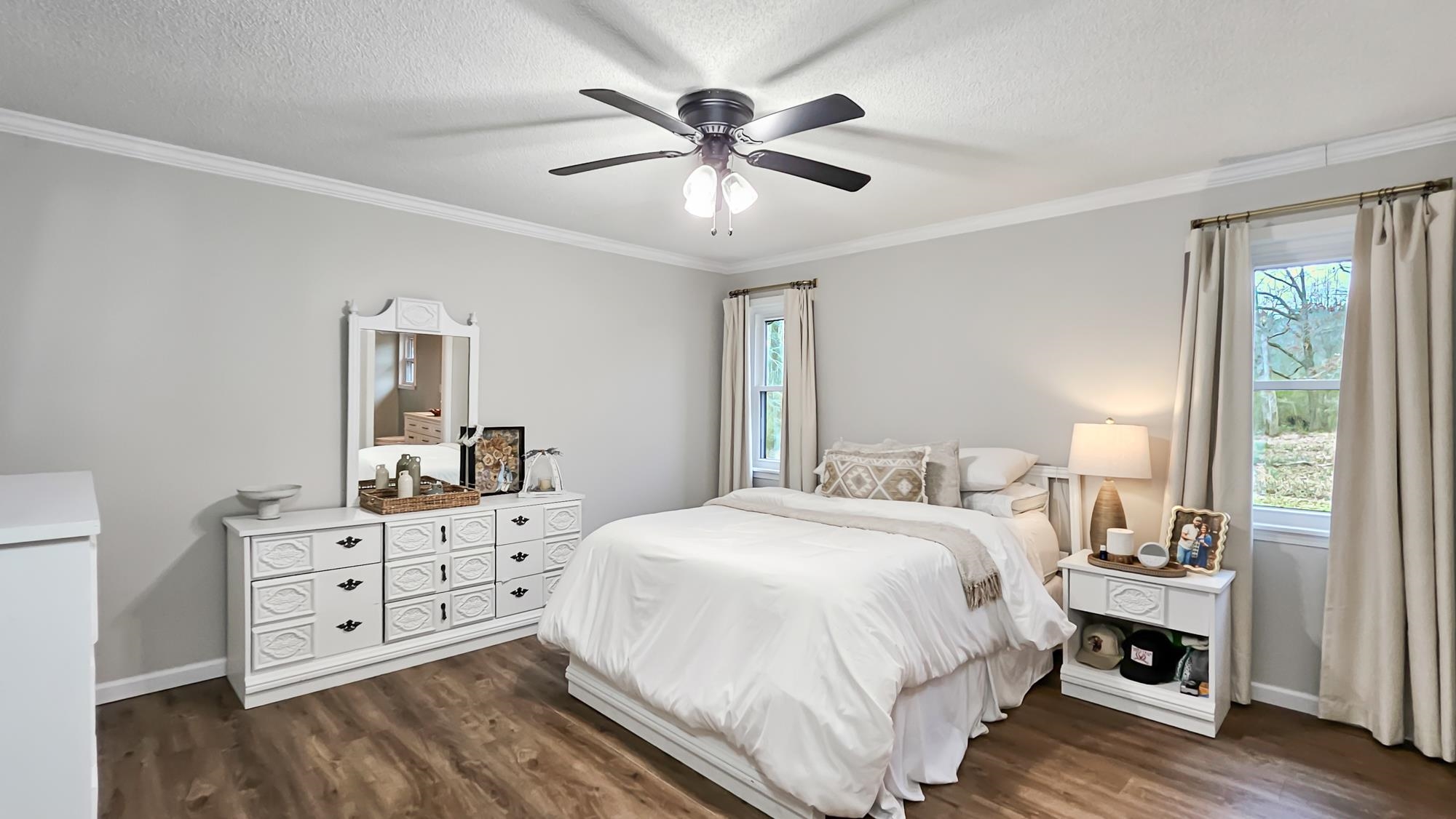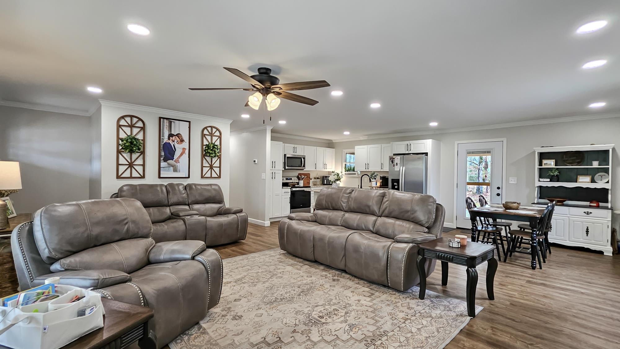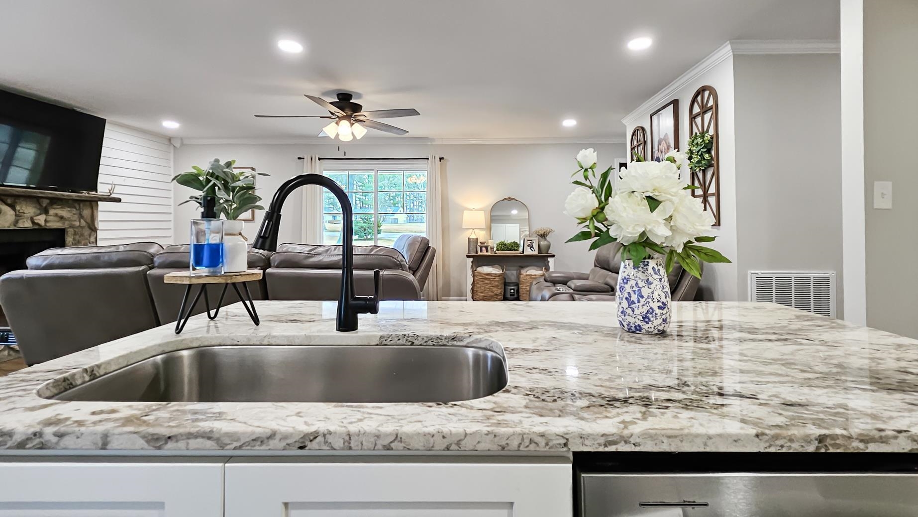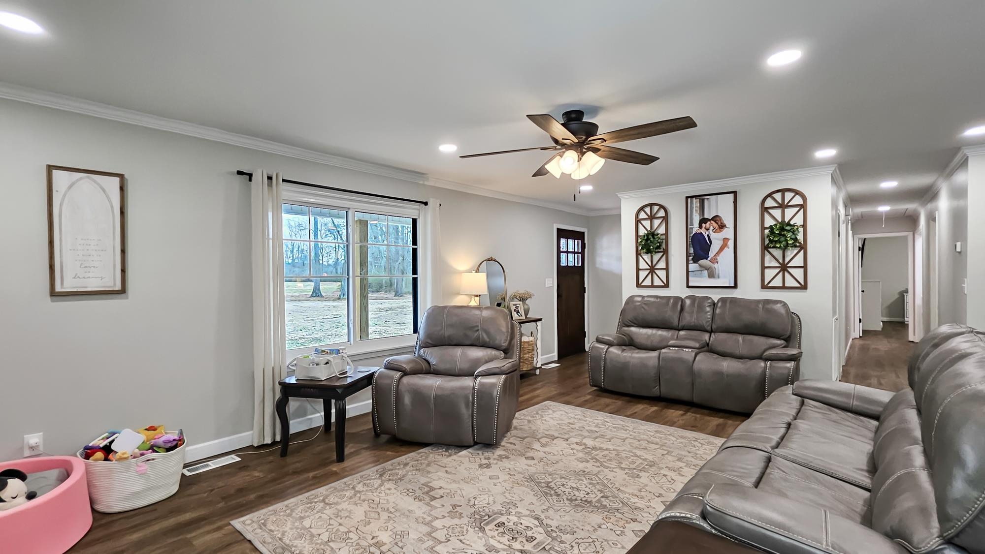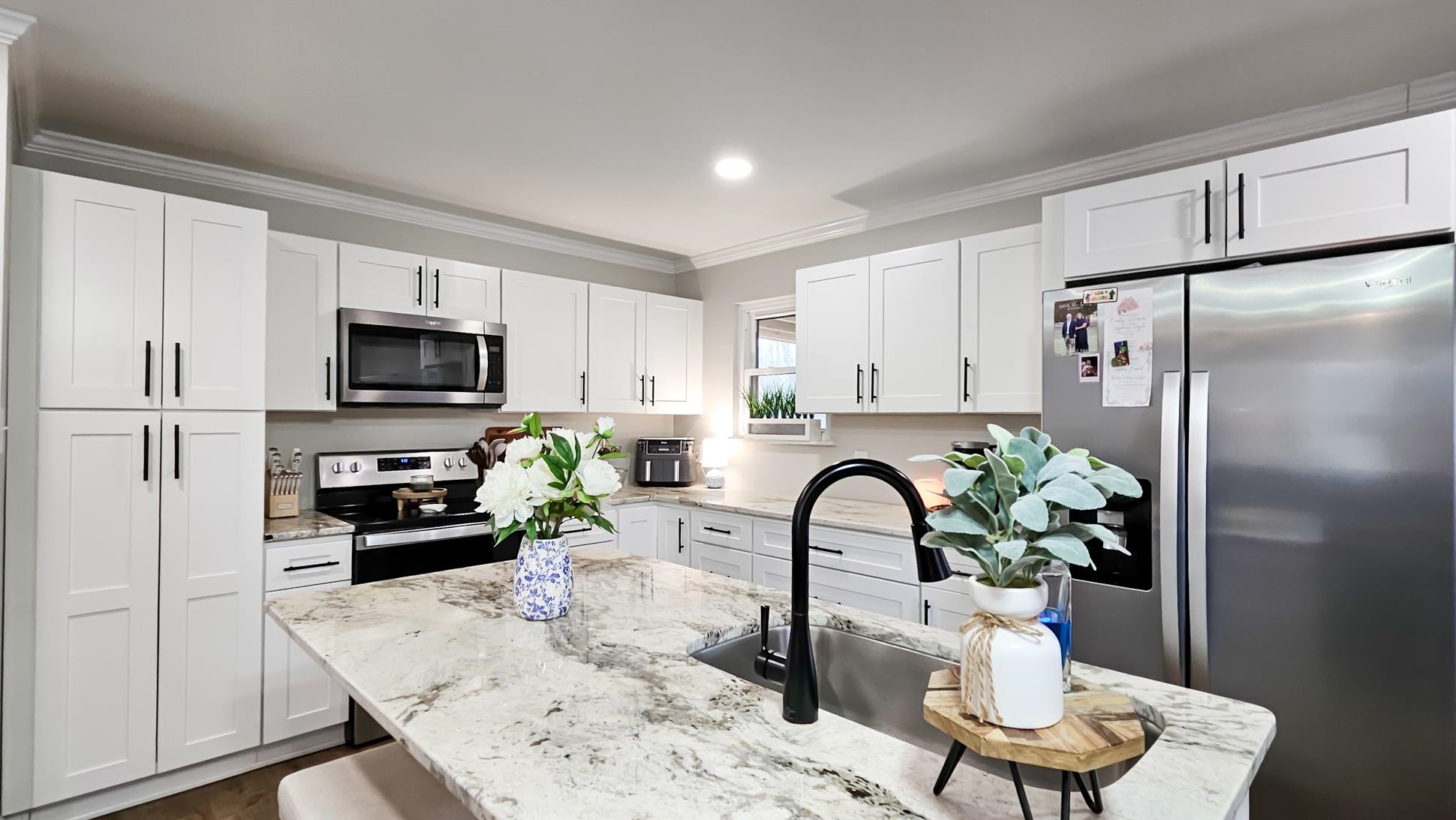 This perfect mid-size family home is ready to be yours. It offers a newly remodeled look, with a beautiful stone wood burning fireplace in the family room. A spacious layout with a private primary suite with his and hers closets and vanities, and a spacious walk-in tile shower. Great sized bedrooms with their own walk-in closets. The open layout in the living, dining and kitchen areas makes for a breathable spacious feel. The kitchen offers beautiful marble countertops, island and plenty of cabinet space. With its recent updates this home also offers newly installed front and back porch areas, new luxury vinyl flooring, a replaced roof, replaced windows, and recently replaced HVAC unit. The property also offers a spacious 24x30 shop with lean to attached. It also offers a perfect corner lot with privacy, its flat and spacious making it perfect for outdoor activities. Call today for more info or a private tour.