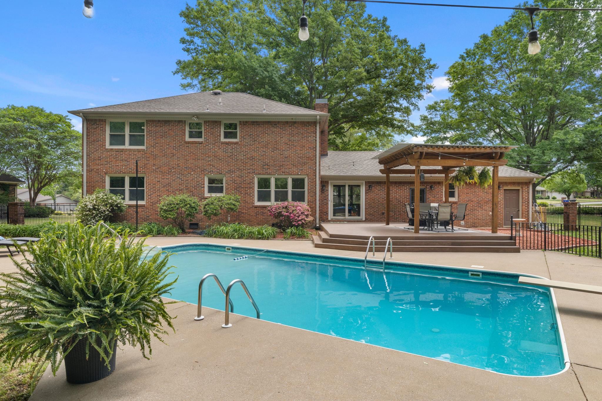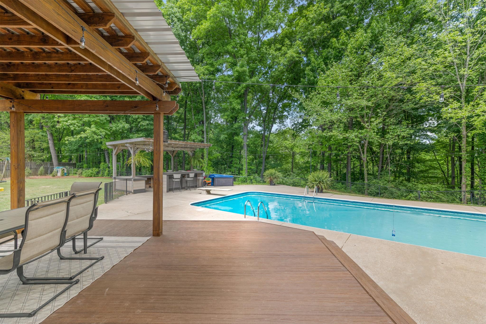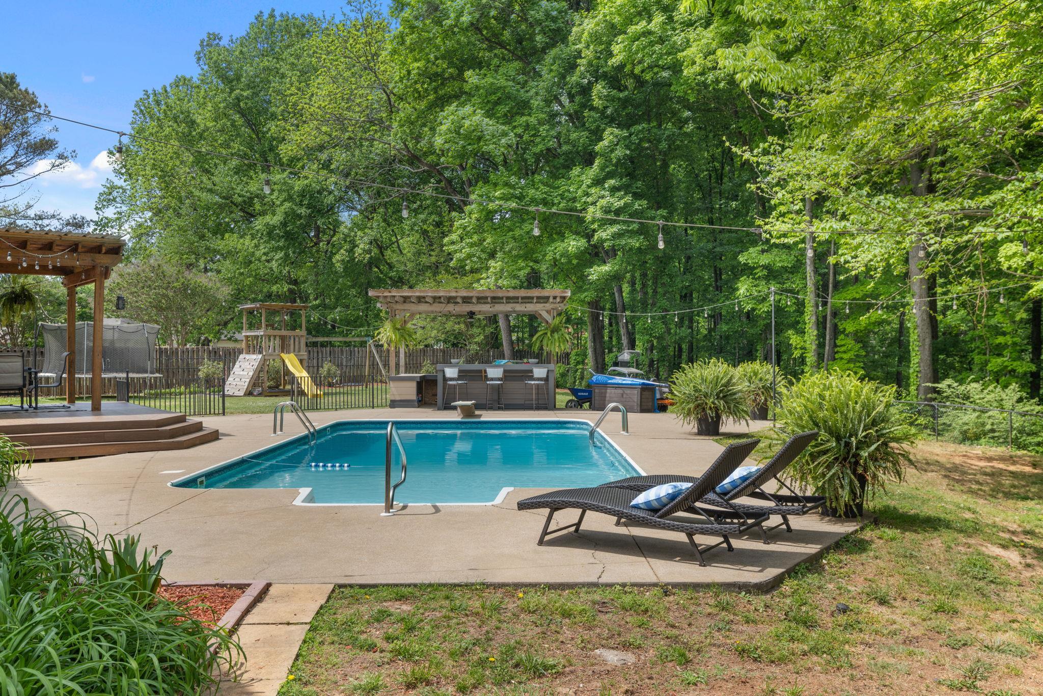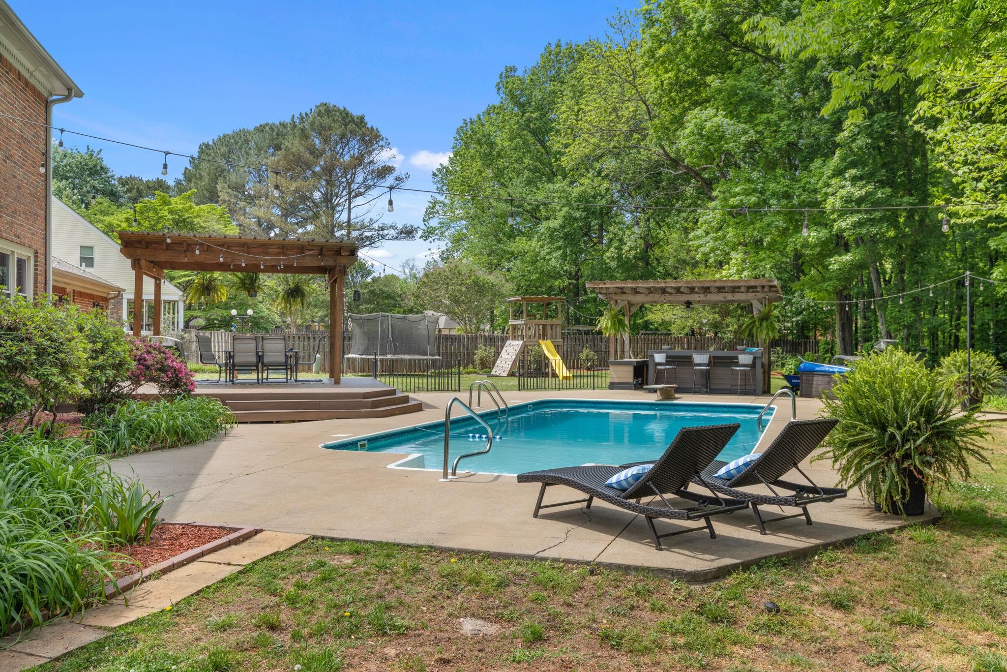 This 4 bedroom, 3-1/2 bath home sits on an acre lot in popular Creekwood subdivision. This home has been freshly painted throughout with new flooring upstairs and new carpet in the office. The primary bedroom has a fireplace ready for gas logs and two closets. Outside, you have a great trex deck overlooking a 18x36 pool which includes a diving board. The entire yard is fenced and perfect for kids and pets to play.