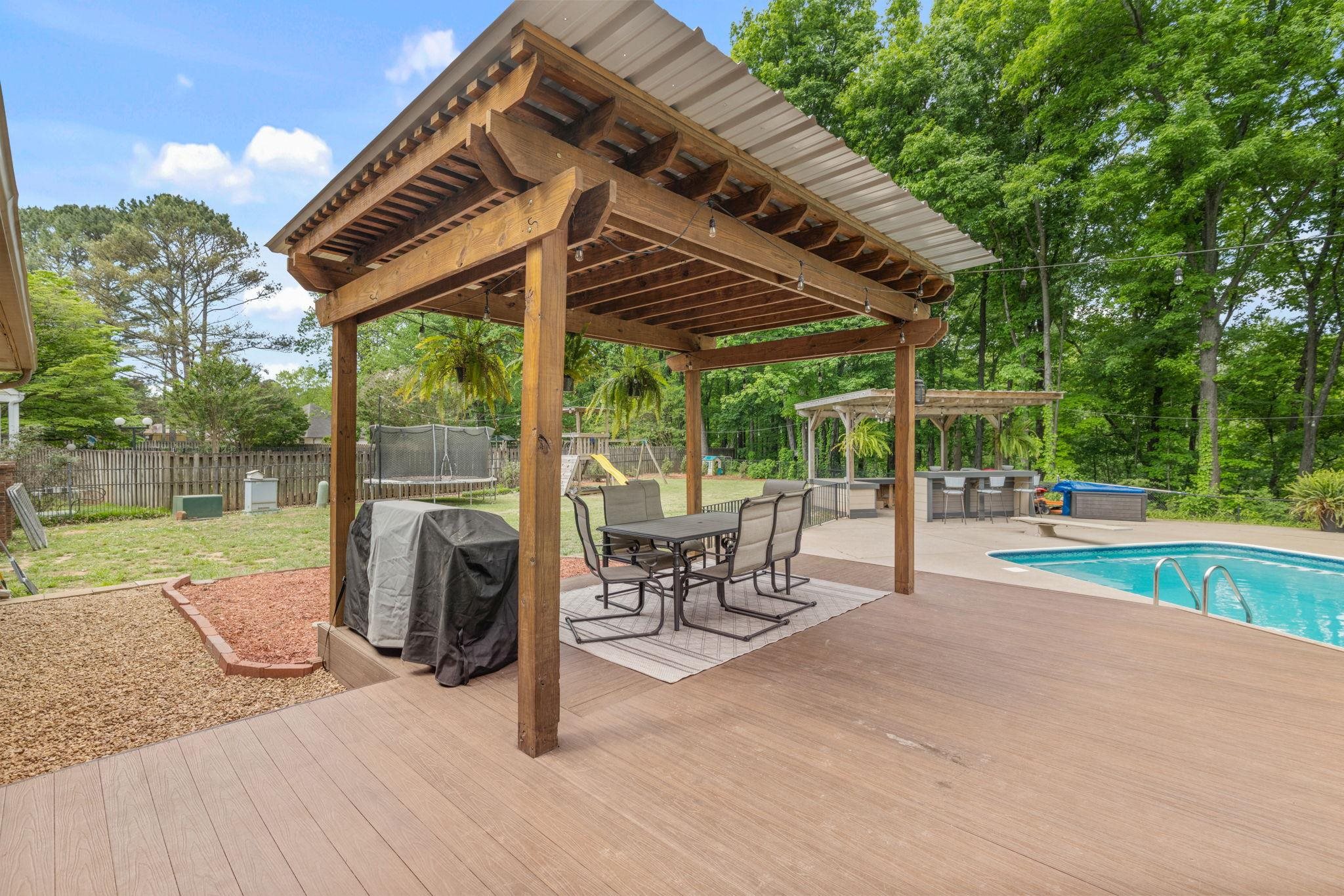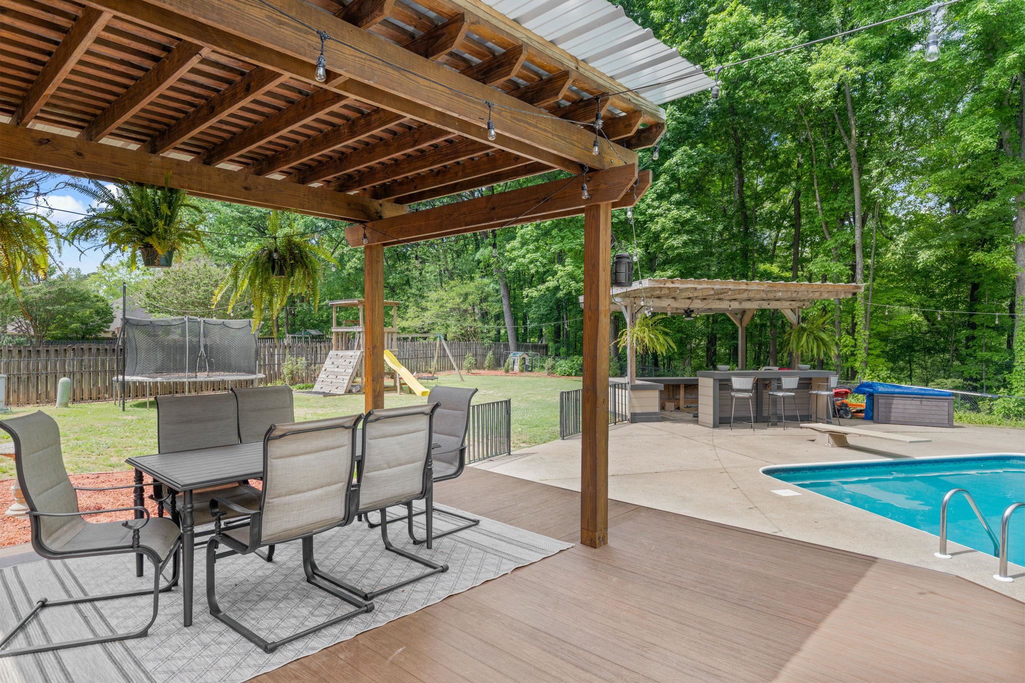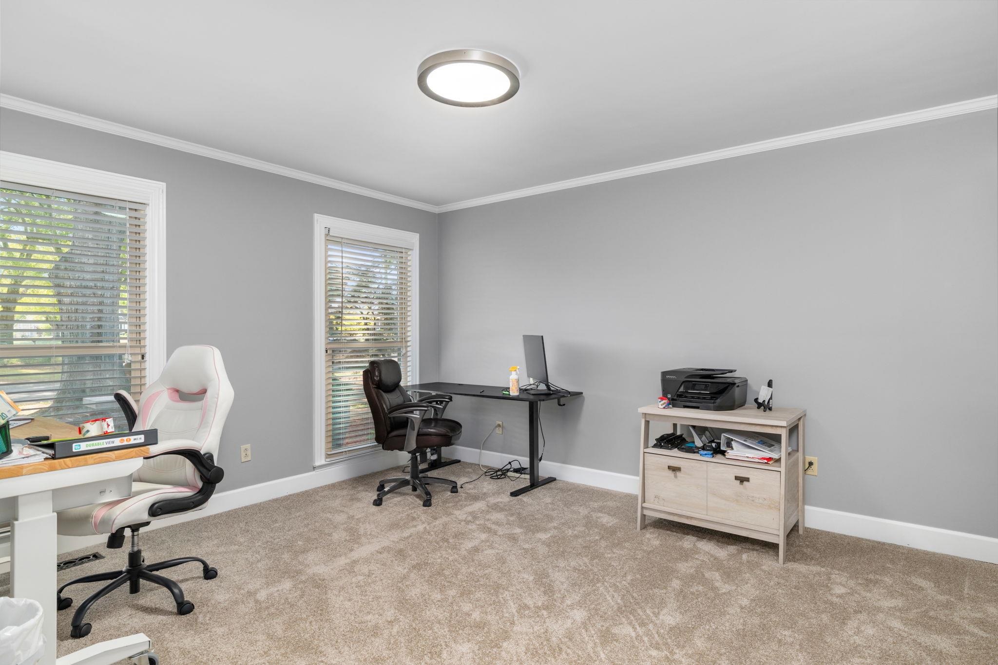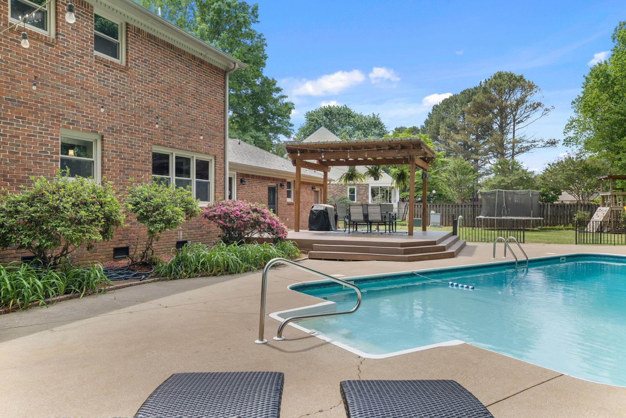 This 4 bedroom, 3-1/2 bath home sits on an acre lot in popular Creekwood subdivision. This home has been freshly painted throughout with new flooring upstairs and new carpet in the office. The primary bedroom has a fireplace ready for gas logs and two closets. Outside, you have a great trex deck overlooking a 18x36 pool which includes a diving board. The entire yard is fenced and perfect for kids and pets to play.