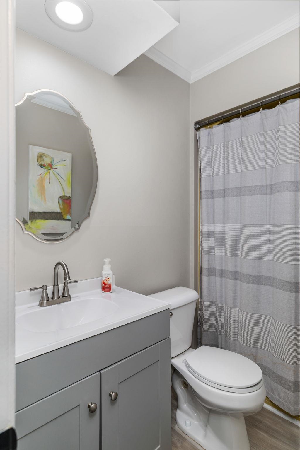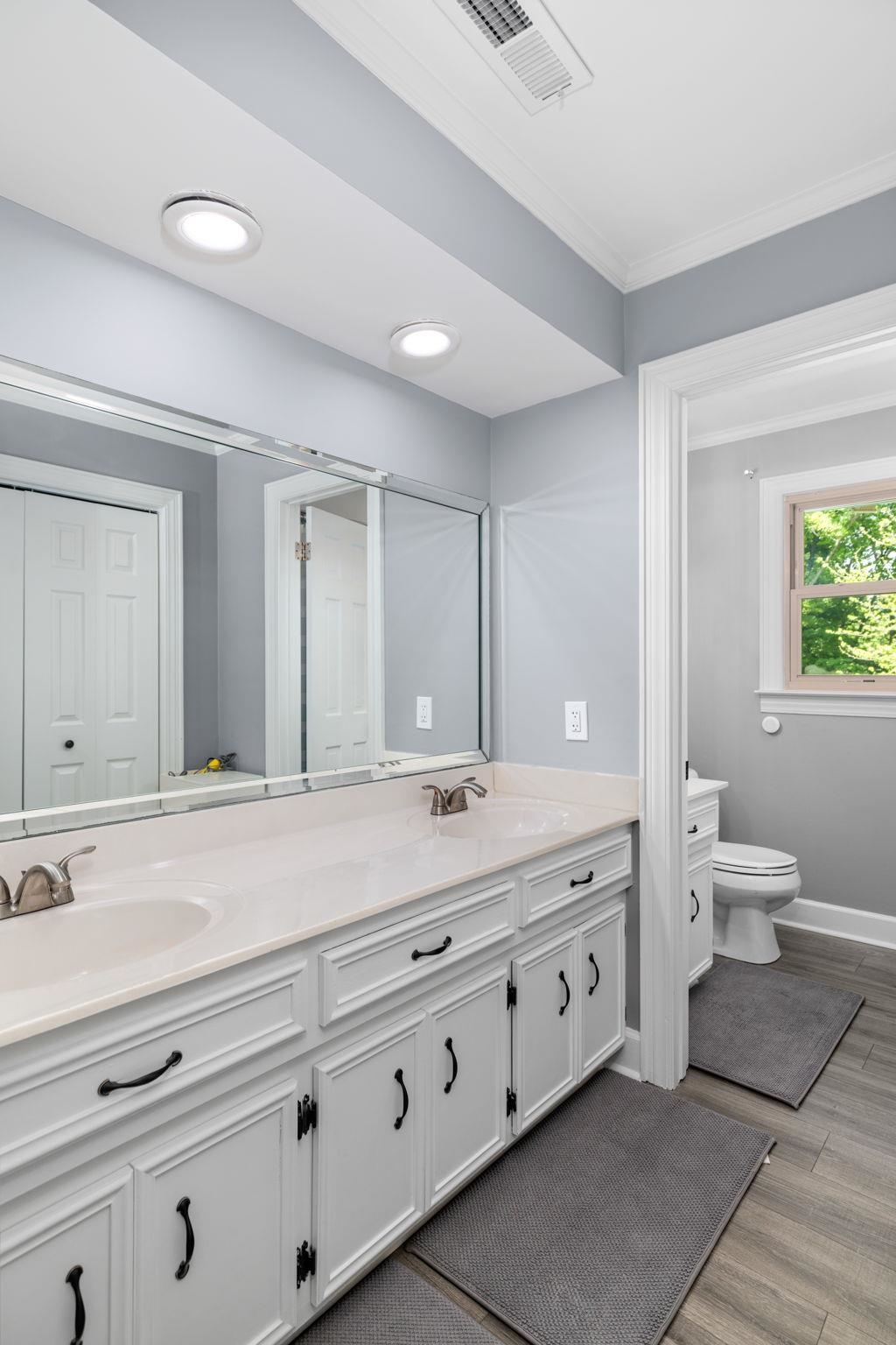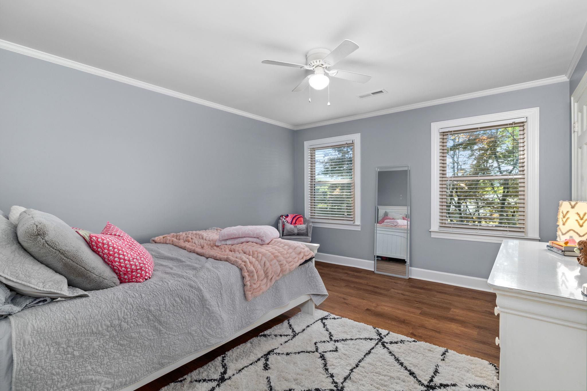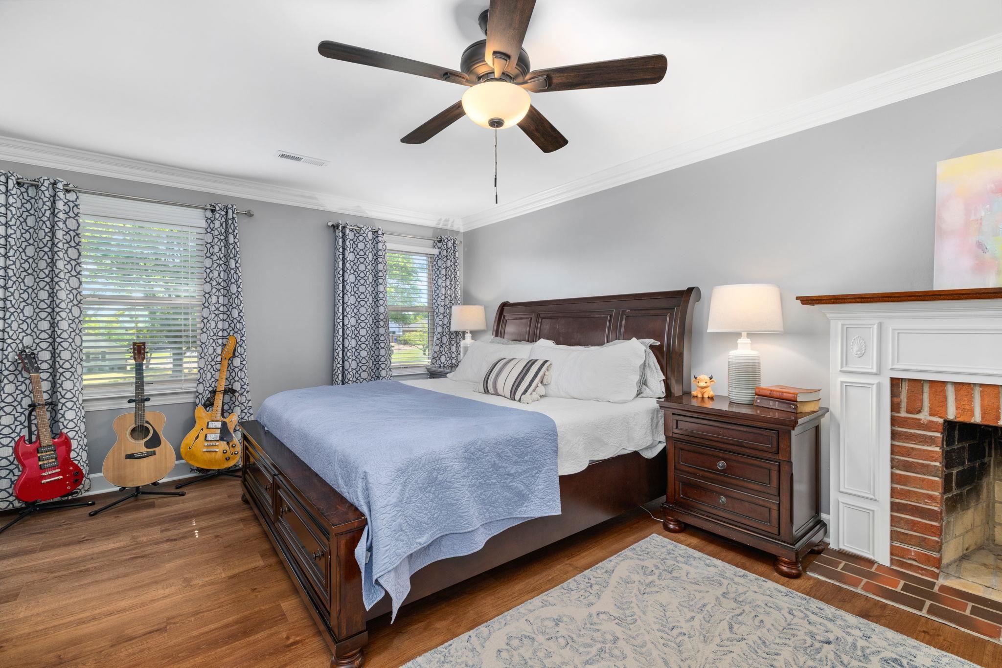 This 4 bedroom, 3-1/2 bath home sits on an acre lot in popular Creekwood subdivision. This home has been freshly painted throughout with new flooring upstairs and new carpet in the office. The primary bedroom has a fireplace ready for gas logs and two closets. Outside, you have a great trex deck overlooking a 18x36 pool which includes a diving board. The entire yard is fenced and perfect for kids and pets to play.