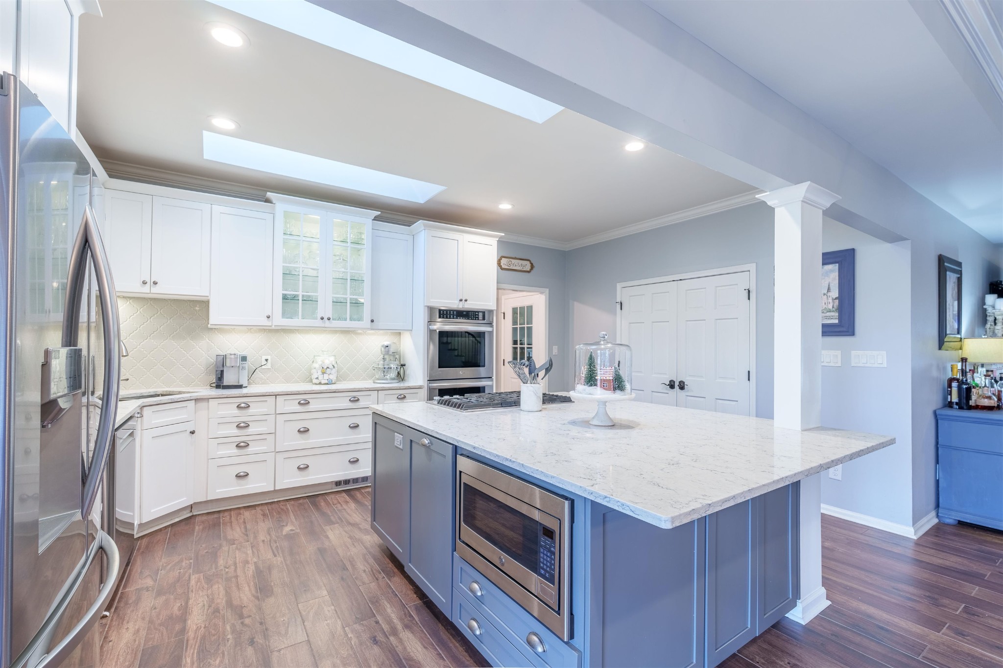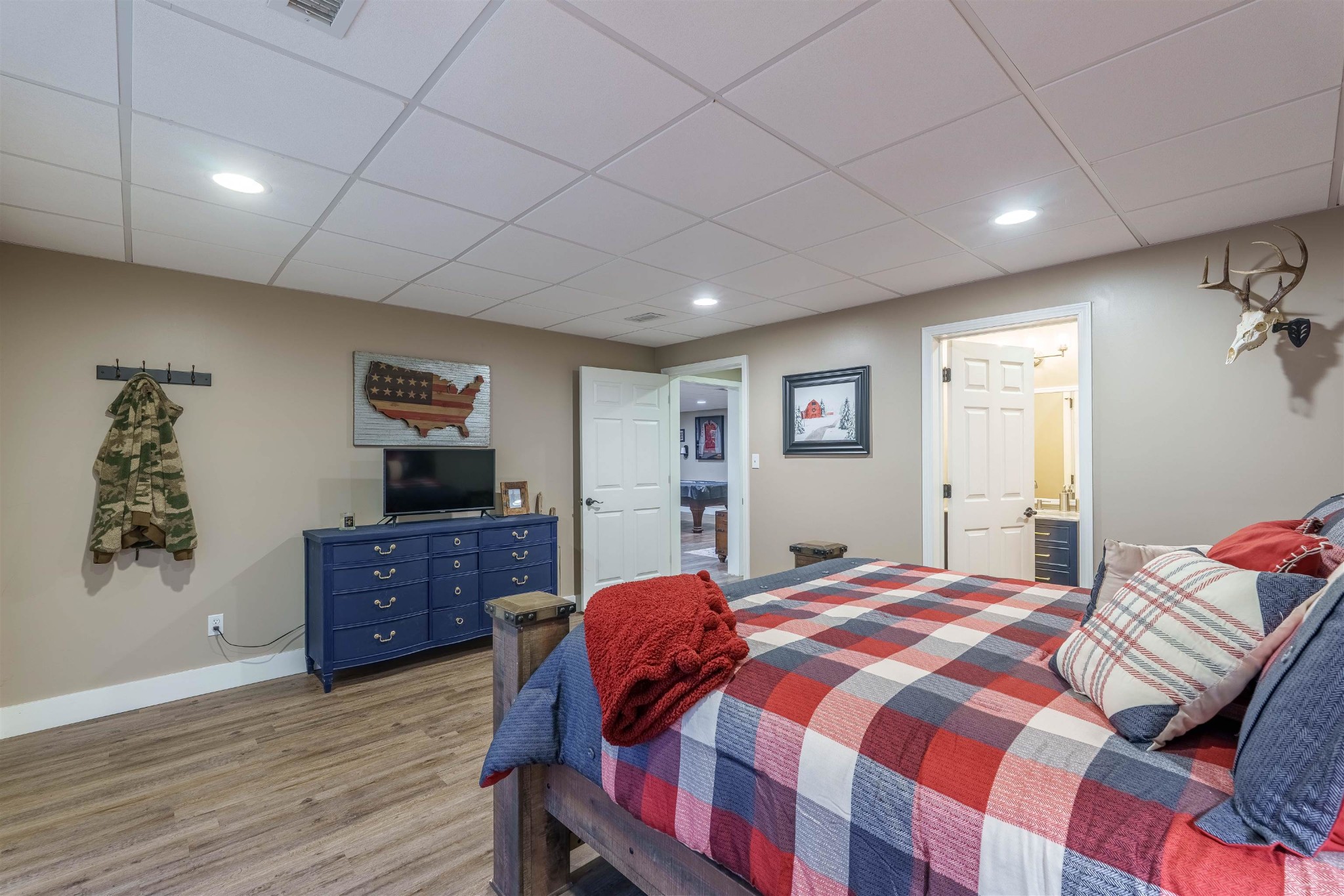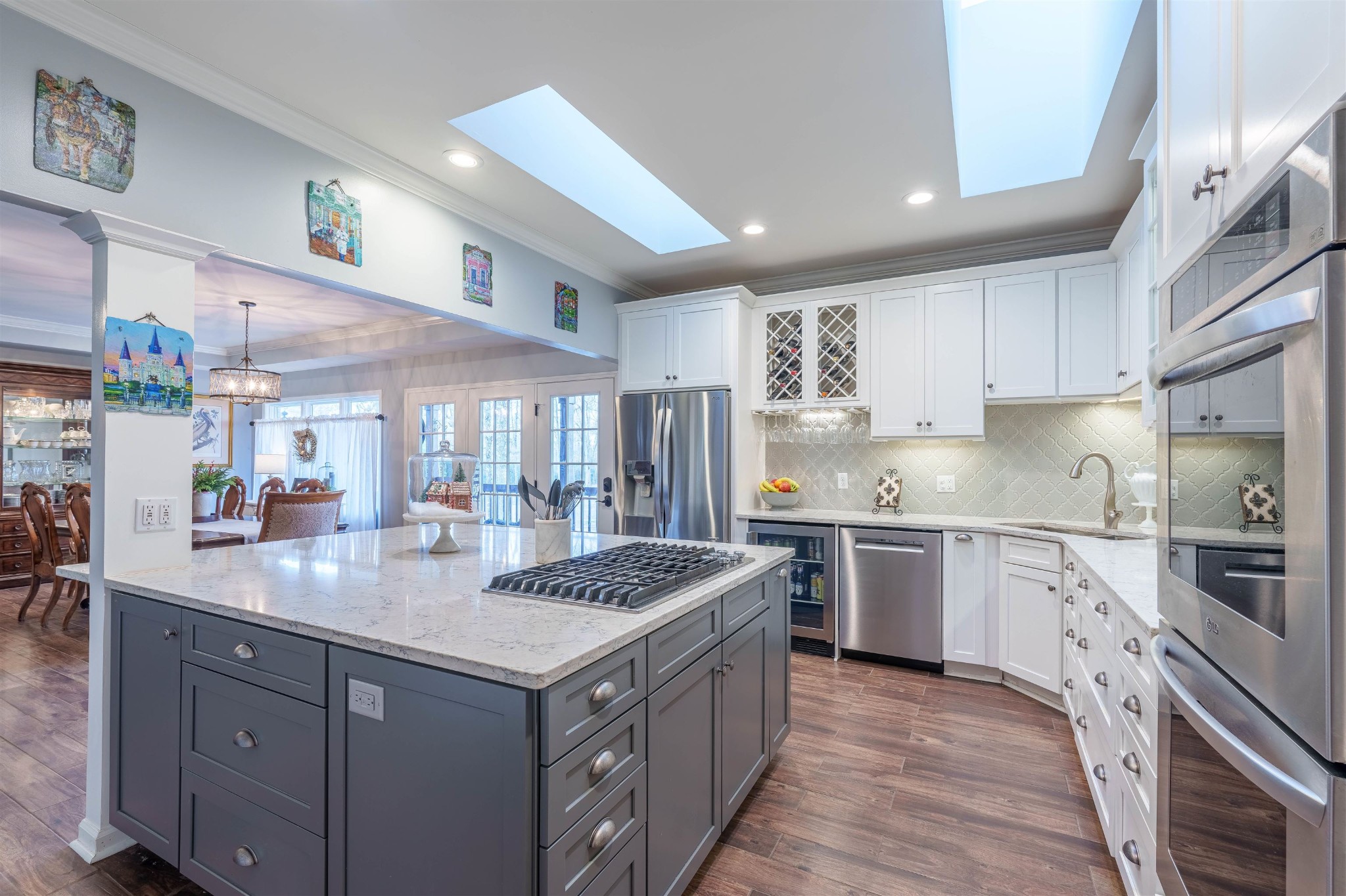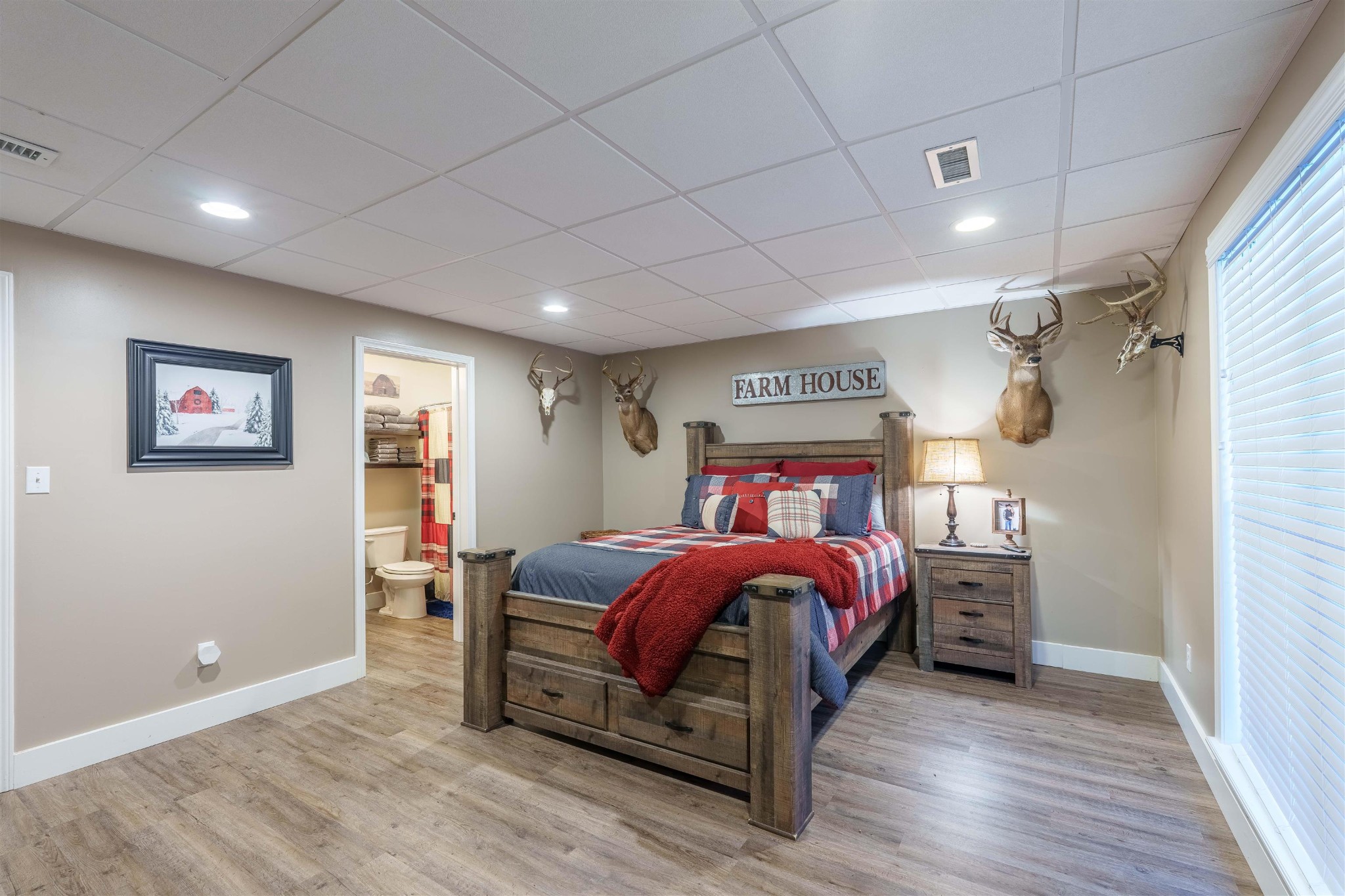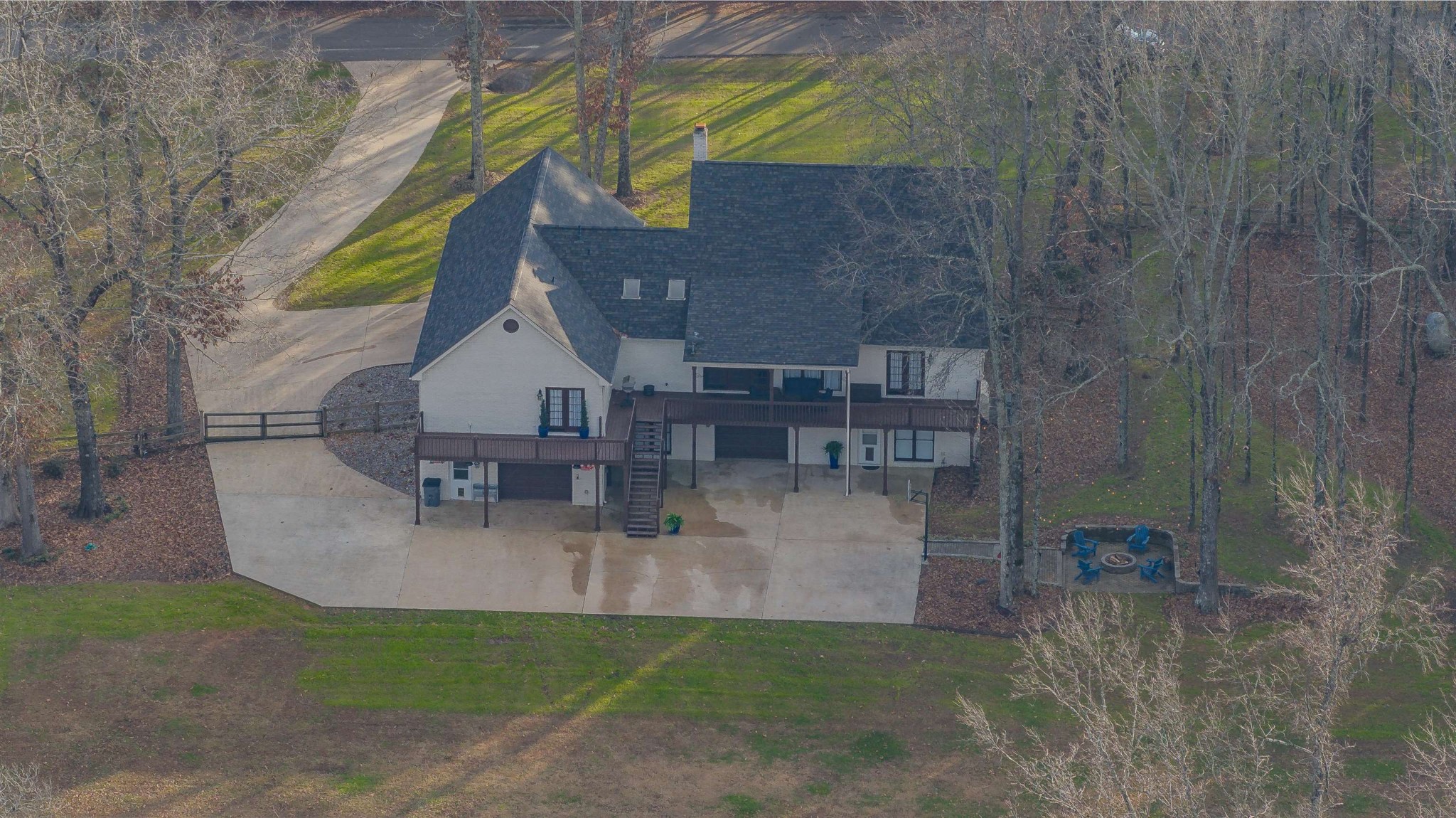 Stunning country retreat on 6.88+/- acres. Your dream home awaits! This exquisitely remodeled home Harmoniously blends luxury with nature. Step inside to a freshly painted interior and new porcelain tile flooring. The kitchen is a chef's dream. Advanced with brand new cabinets ,stunning quartz countertops, and an oversized island. A full basement suite complete with a full kitchen w/granite countertops. Perfect for an in-law suite or guest retreat. The primary bedroom and ensuite bath features double walk-in closets and jetted tub. Step outside to new deck that span across the back of the home, with 3 acres fenced to the creek this property offers abundant wildlife and multiple deer. 3 attached garages measuring 32x23 and23x23. Detached double garage 40x 30. Enjoy gatherings around the firepit or take advantage of the new RV Hookups. The unique living area in the basement features a "garage door" walkout, creating fabulous entertaining space that invites the outdoors in.