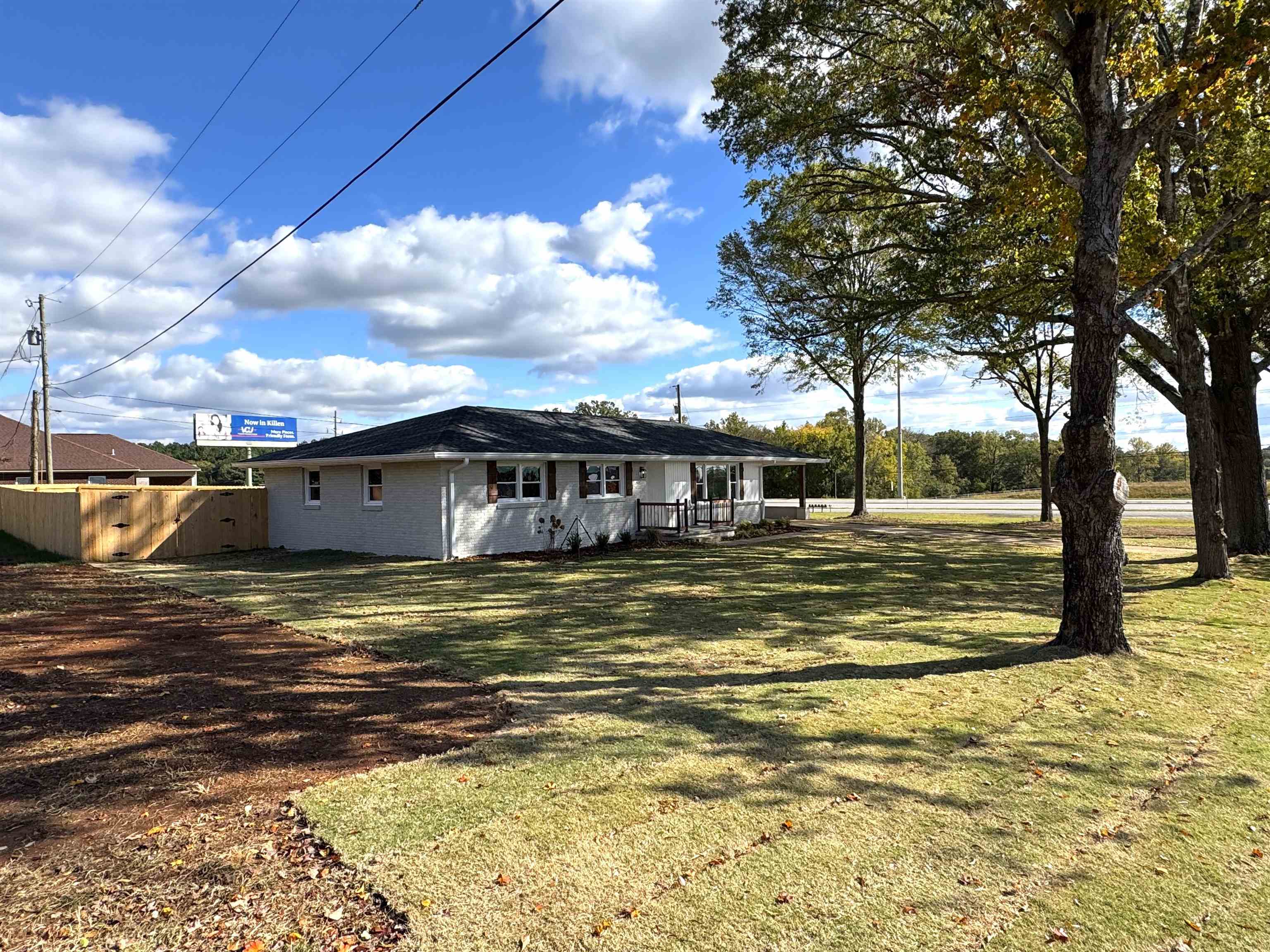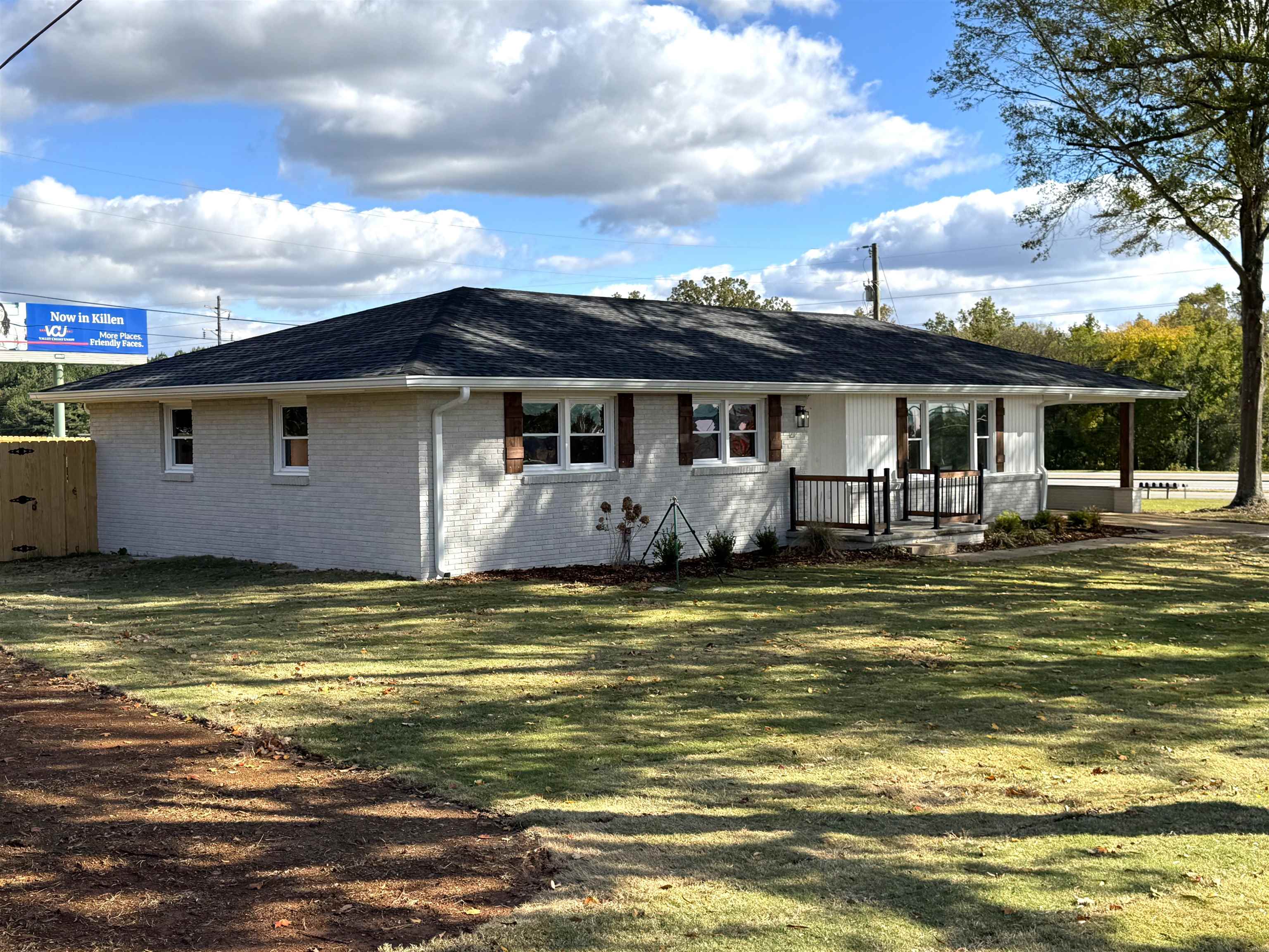 Residential or commercial, completely remodeled 3 bed, 2 bath brick house in Killen conveniently located just off Hwy 72. This 1518 sq. ft. house sits on a .35+/- ac lot. The new upgrades include a privacy fenced backyard, septic system, HVAC, roof, windows, cabinets, quartz countertops, water heater, electric/lighting, plumbing/faucets, bathrooms, exterior doors, gutters, appliances, LVP flooring, paint, and landscaping.