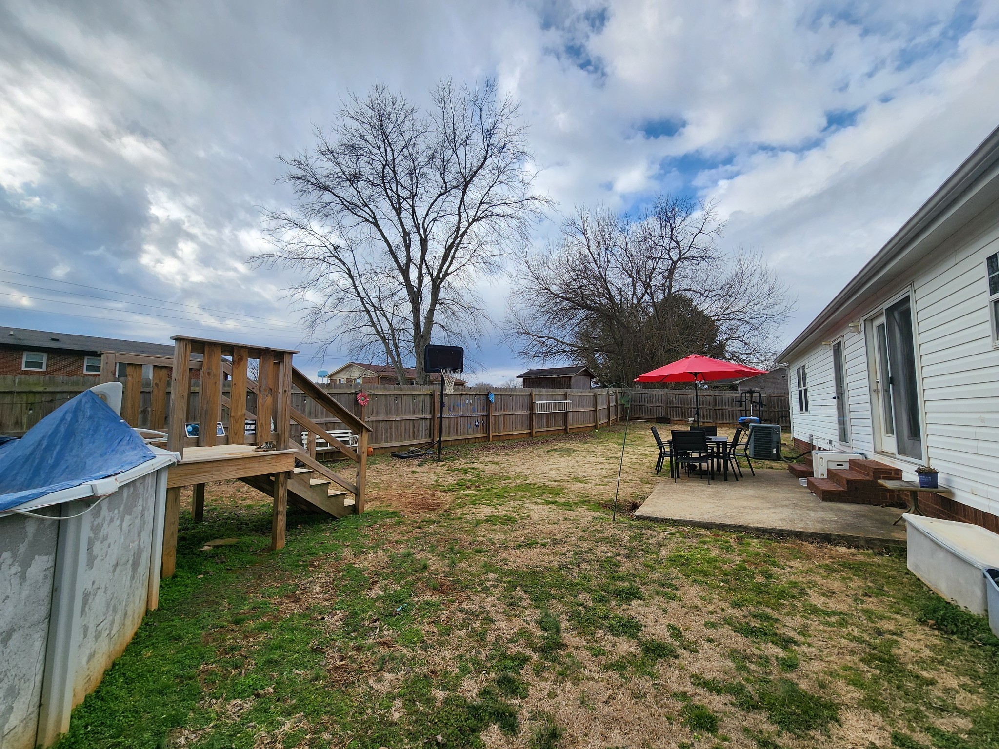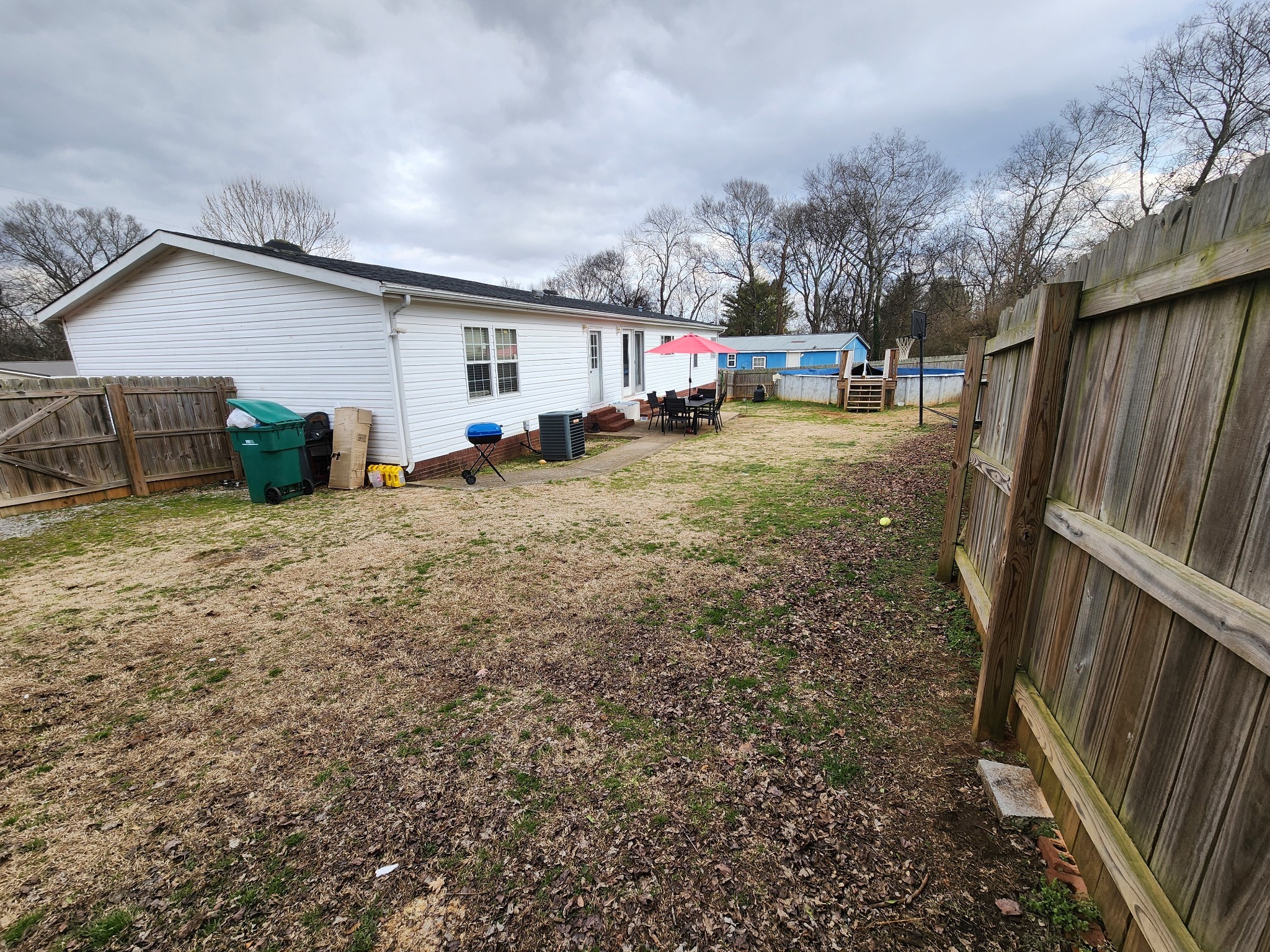 Welcome home to this spacious 2,040 sq ft double-wide on a permanent foundation! This home features large bedrooms throughout, each with a walk in closets, offering plenty of space and storage. The kitchen offers an abundance of countertop space and cabinets, along with a large island - perfect for cooking, gathering, and entertaining. This home offers generous living space and wood burning fireplace. Retreat to to the oversized primary suite, complete with a huge walk in closet and a private bath featuring a soaking tub, an 8' vanity with a dedicated makeup area, and extra storage. Enjoy the outdoors from the large concrete front porch, and take advantage of the fully fenced backyard with a 24' above ground pool- ideal for summer fun! Extra storage provides added convivence.