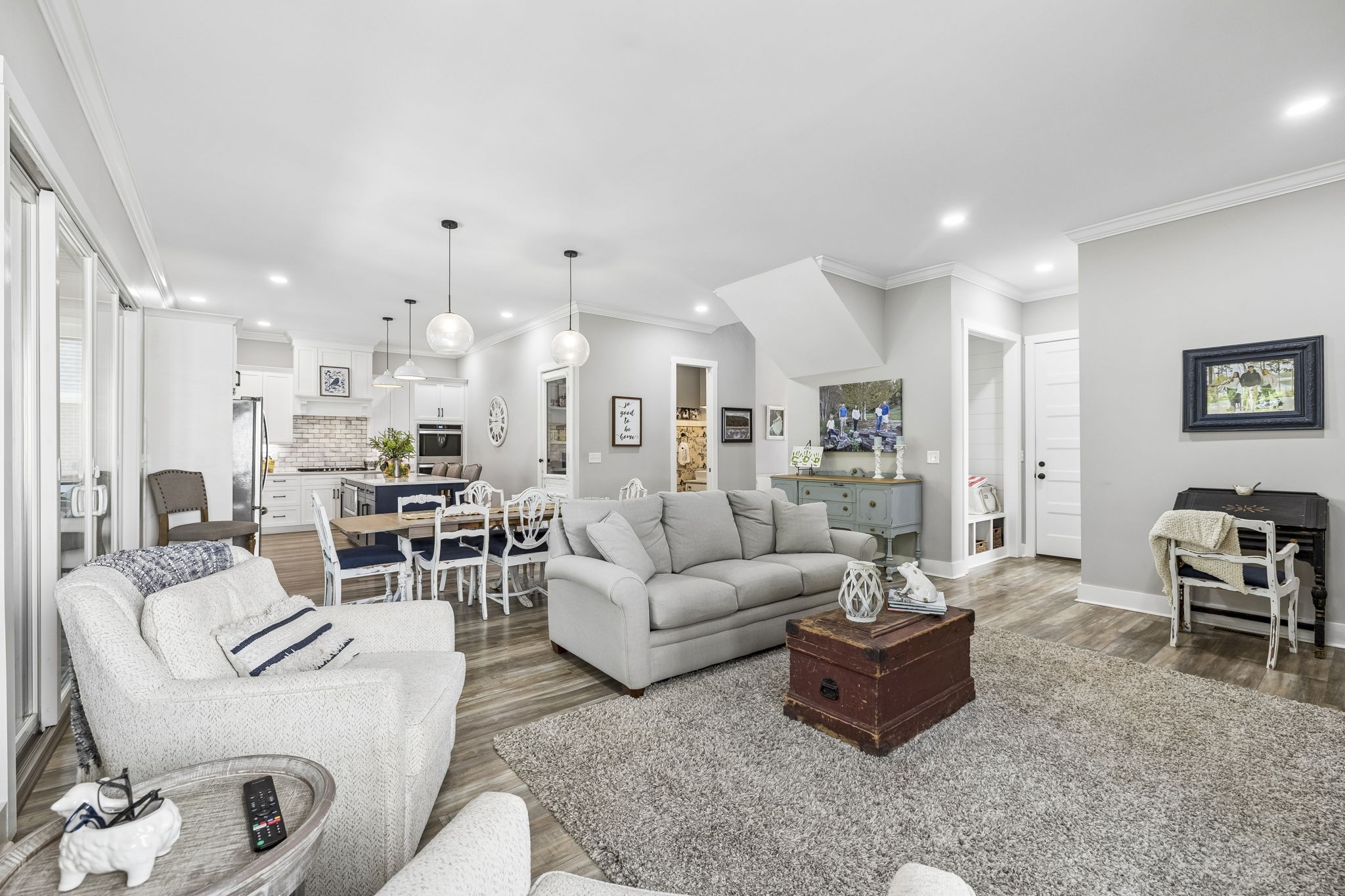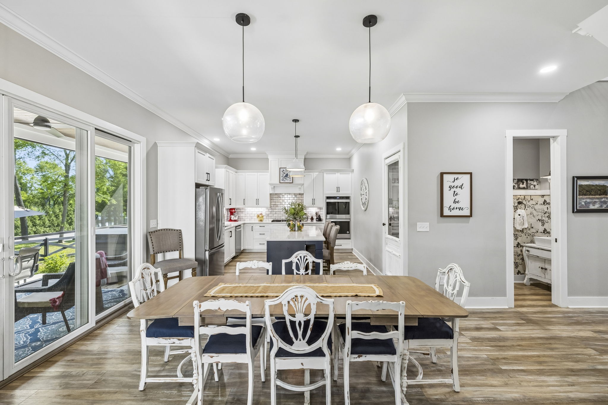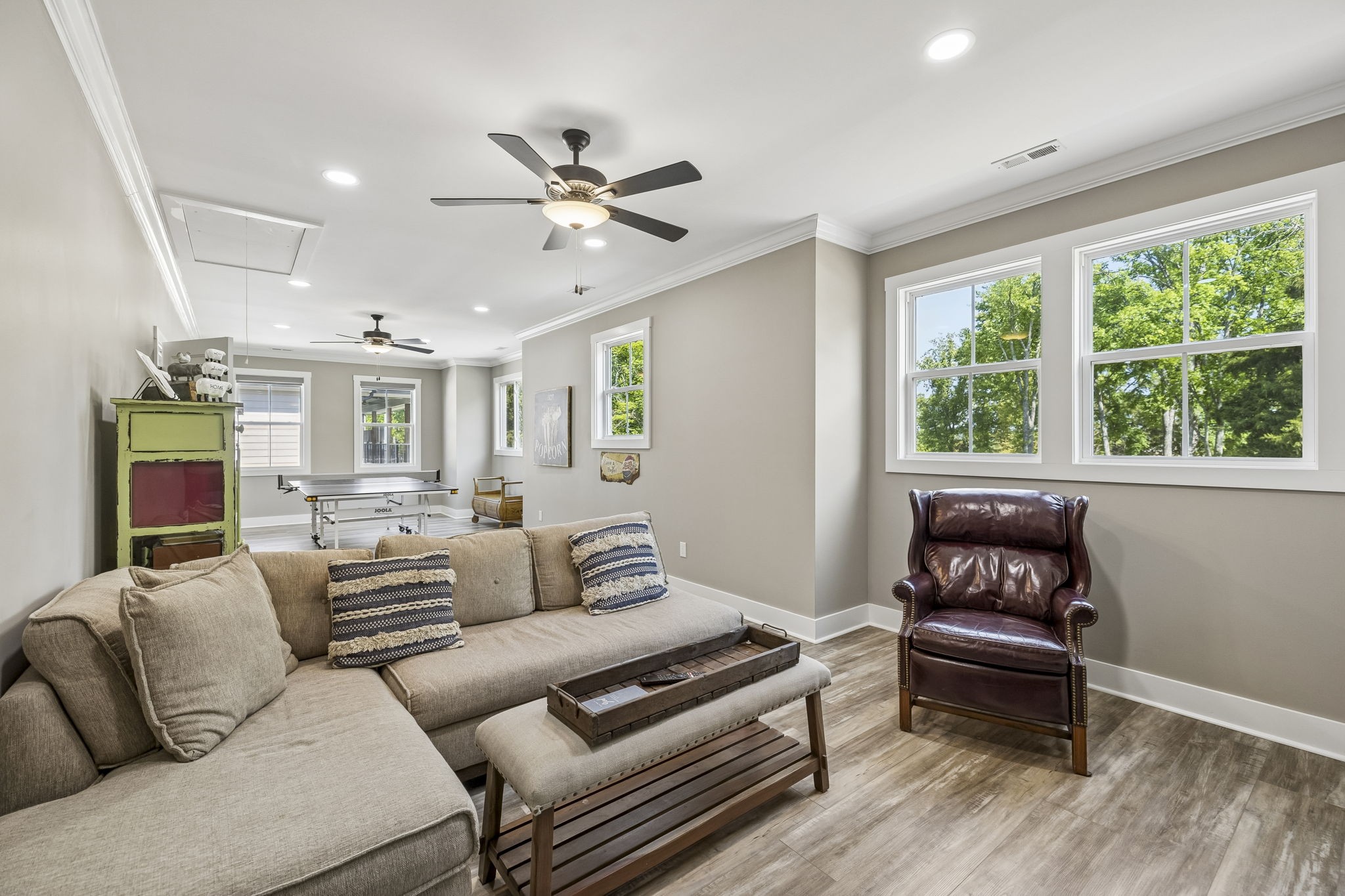 This stunning four bedroom 3.5 bath lake-area home is truly calling your name. Upstairs featuring 3 bedrooms, 2 bathrooms, a spacious bonus room perfect for a ping pong or pool table, plus a dedicated office or craft room, this home offers both comfort and versatility. The main level includes a well-appointed kitchen with double ovens, cooktop, microwave, dishwasher, and refrigerator, along with a welcoming dining and family room. The primary bedroom is conveniently located on the main floor, along with an oversized garage for ample storage. Relax year-round on the large screened-in porch, complete with its own gas fireplace and plenty of space for a hot tub—perfect for entertaining or unwinding while enjoying the beautiful views. Inside, the cozy family room also features a gas fireplace, adding warmth and charm throughout. A nearby marina parking area just behind the home provides overflow parking for guests for gatherings. (Not deeded with the property) Located in the prestigious Twin Creeks Village, this home is within walking distance to Tims Ford Marina and offers access to exceptional amenities, including three pools, a clubhouse, and a fire pit. This isn’t just a house—it truly feels like home.