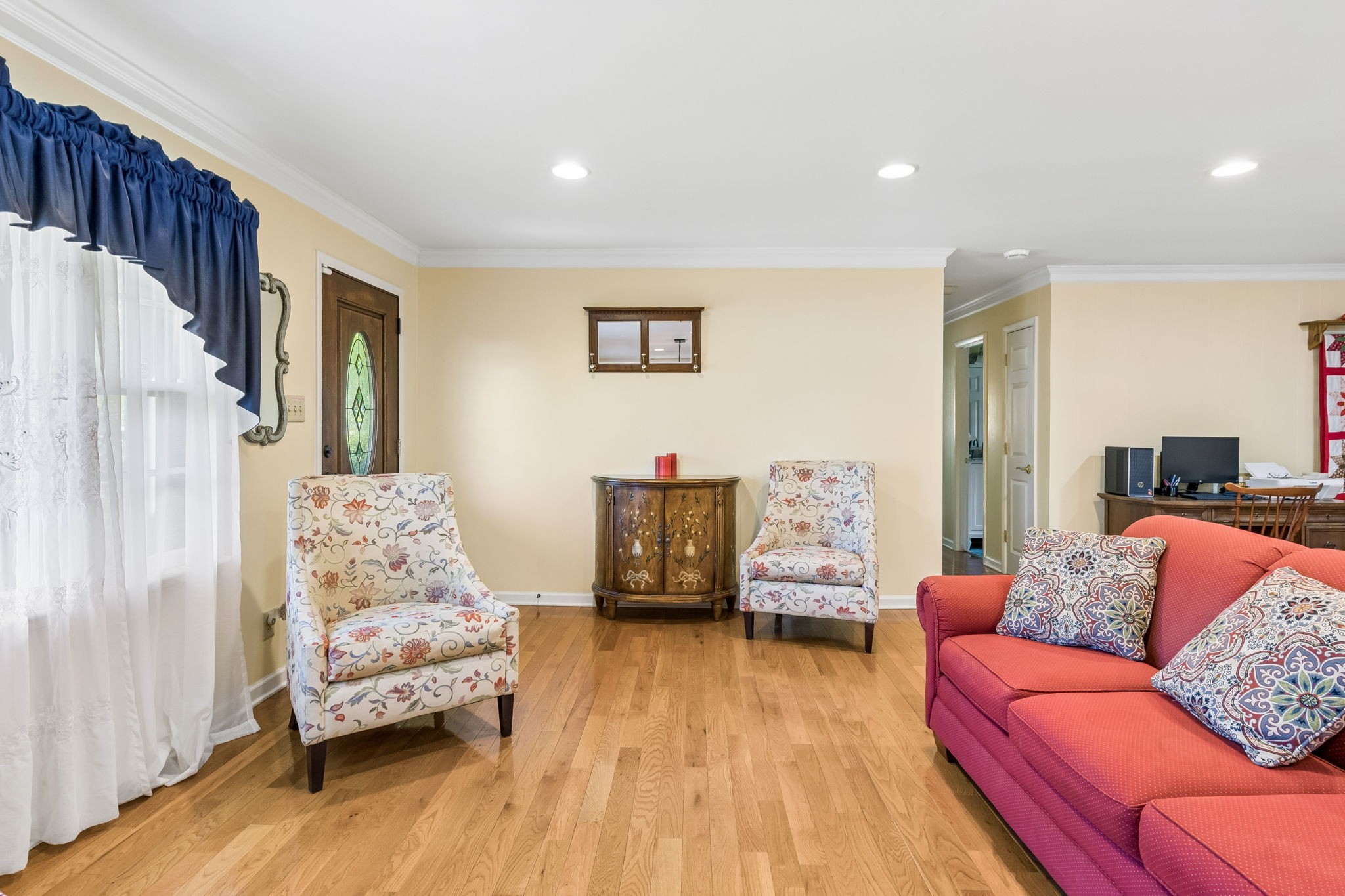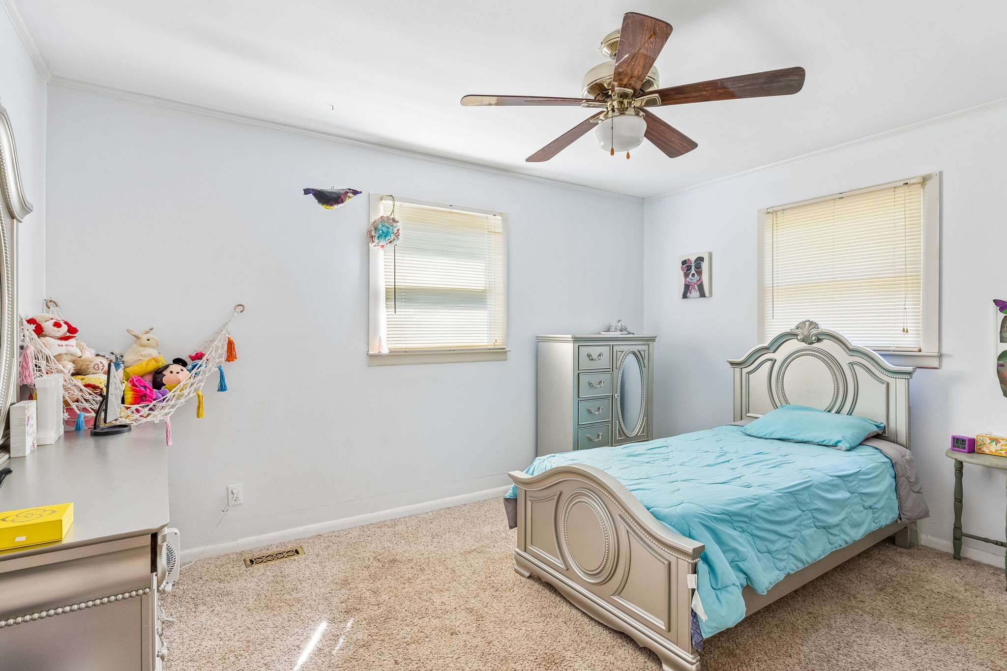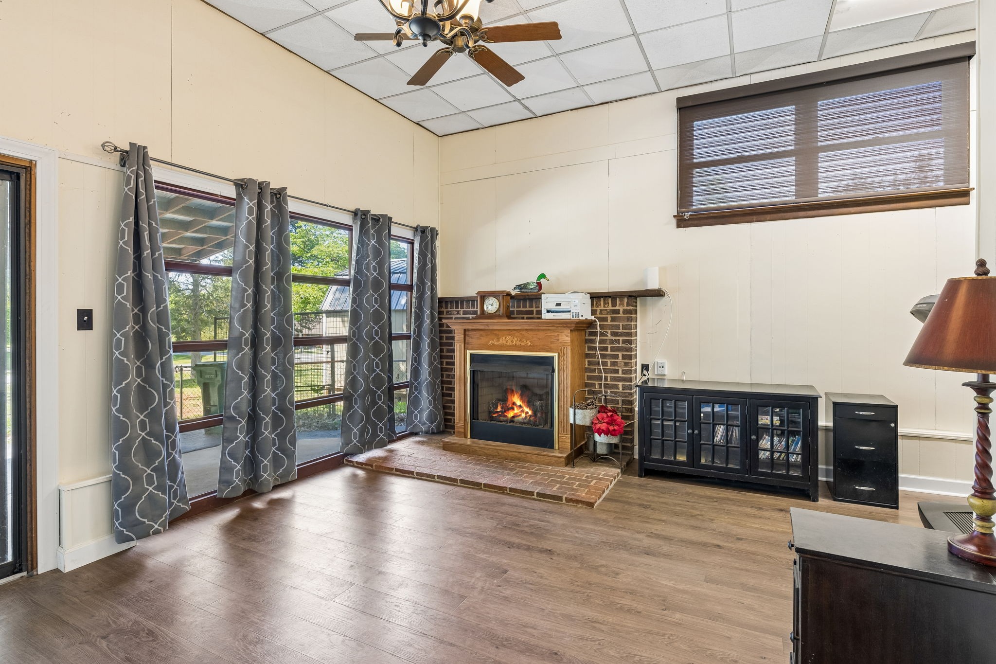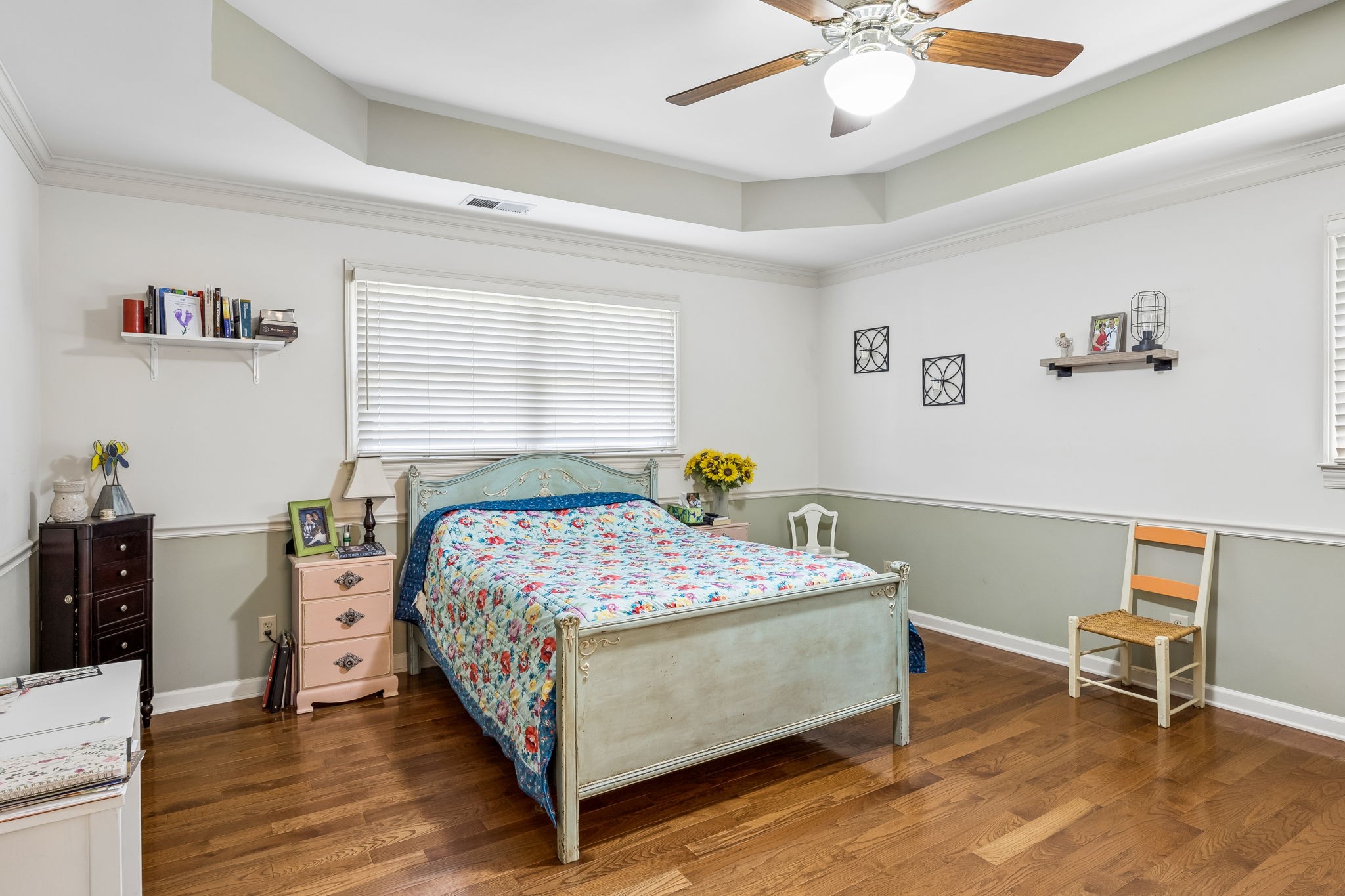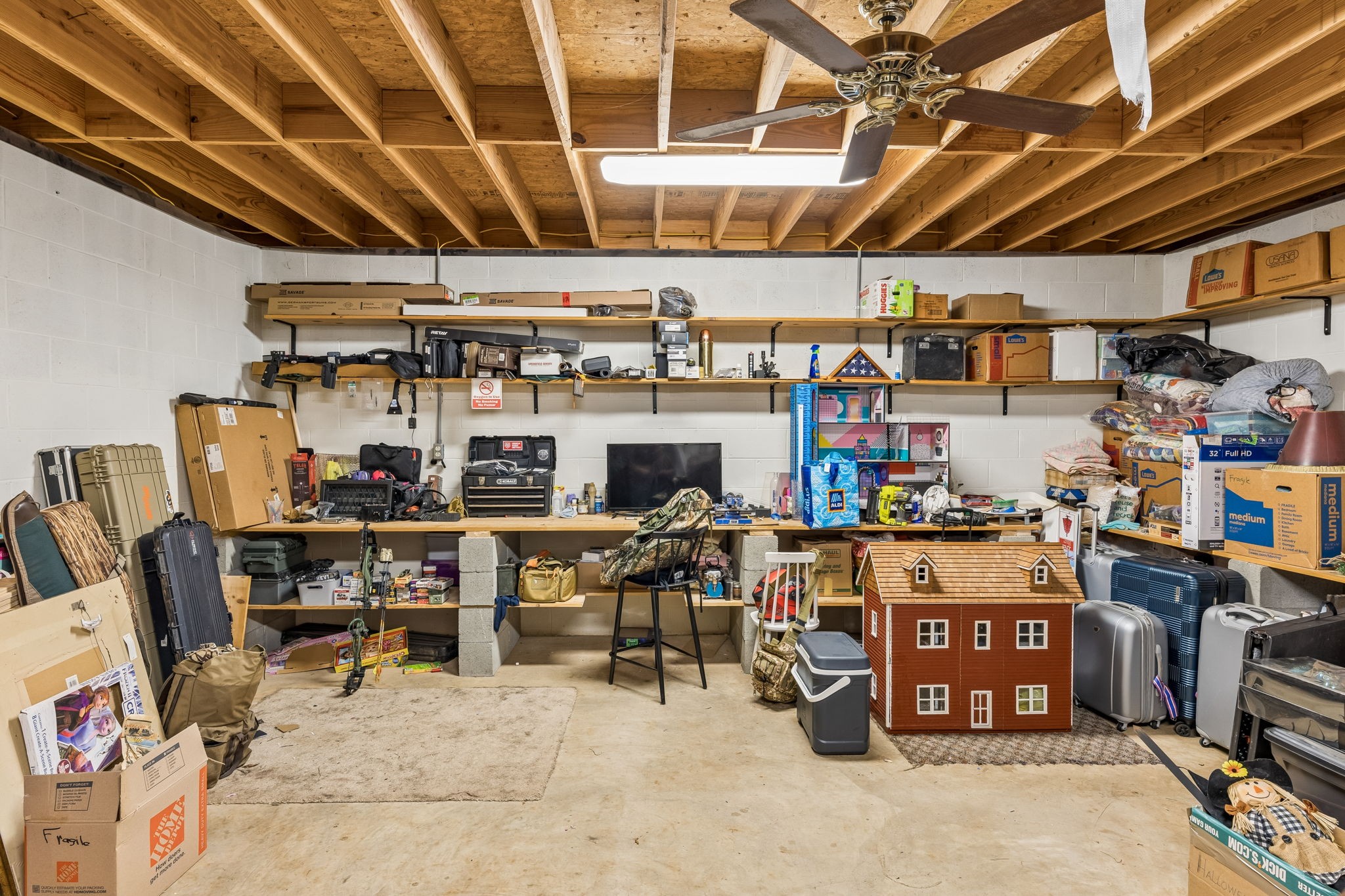 Great one-level floor plan featuring two primary suites located on opposite ends of the home—perfect for privacy and flexibility. This home offers abundant storage throughout, including an oversized utility room with a walk-in pantry. A heated and cooled basement provides additional storage space or could serve as a potential storm shelter. Hardwood and tile flooring run throughout the main areas, with carpet only in the secondary bedrooms. Great outdoor space with multiple covered areas. Large fenced in yard with oversized 2 car detached garage.