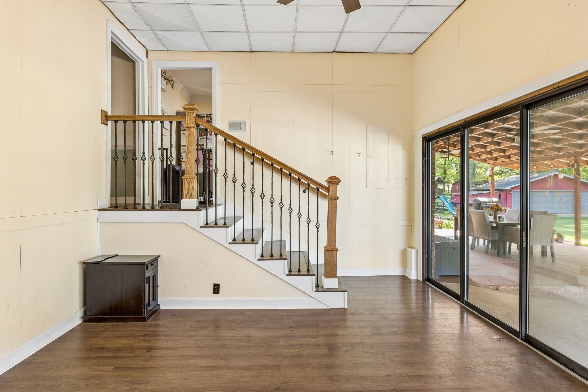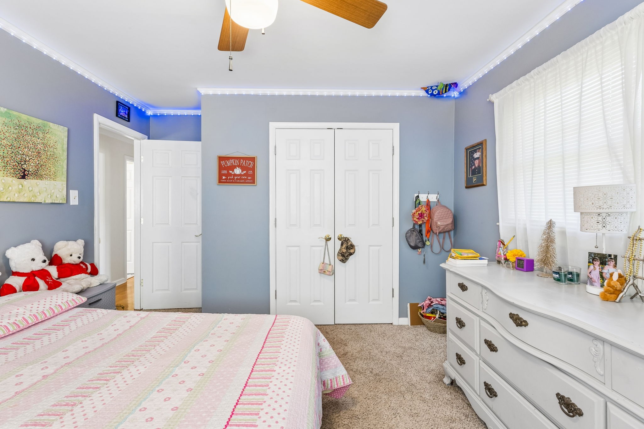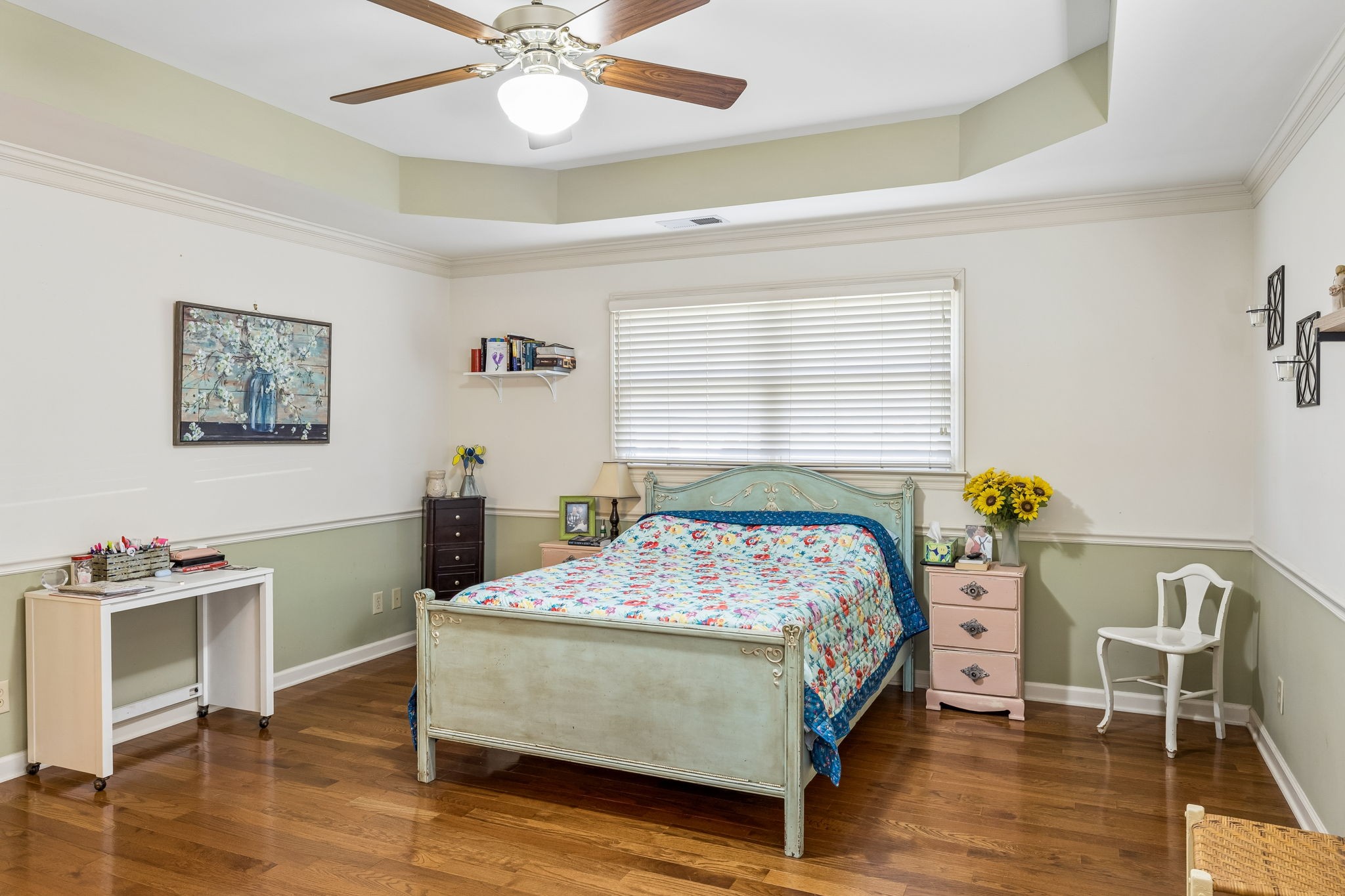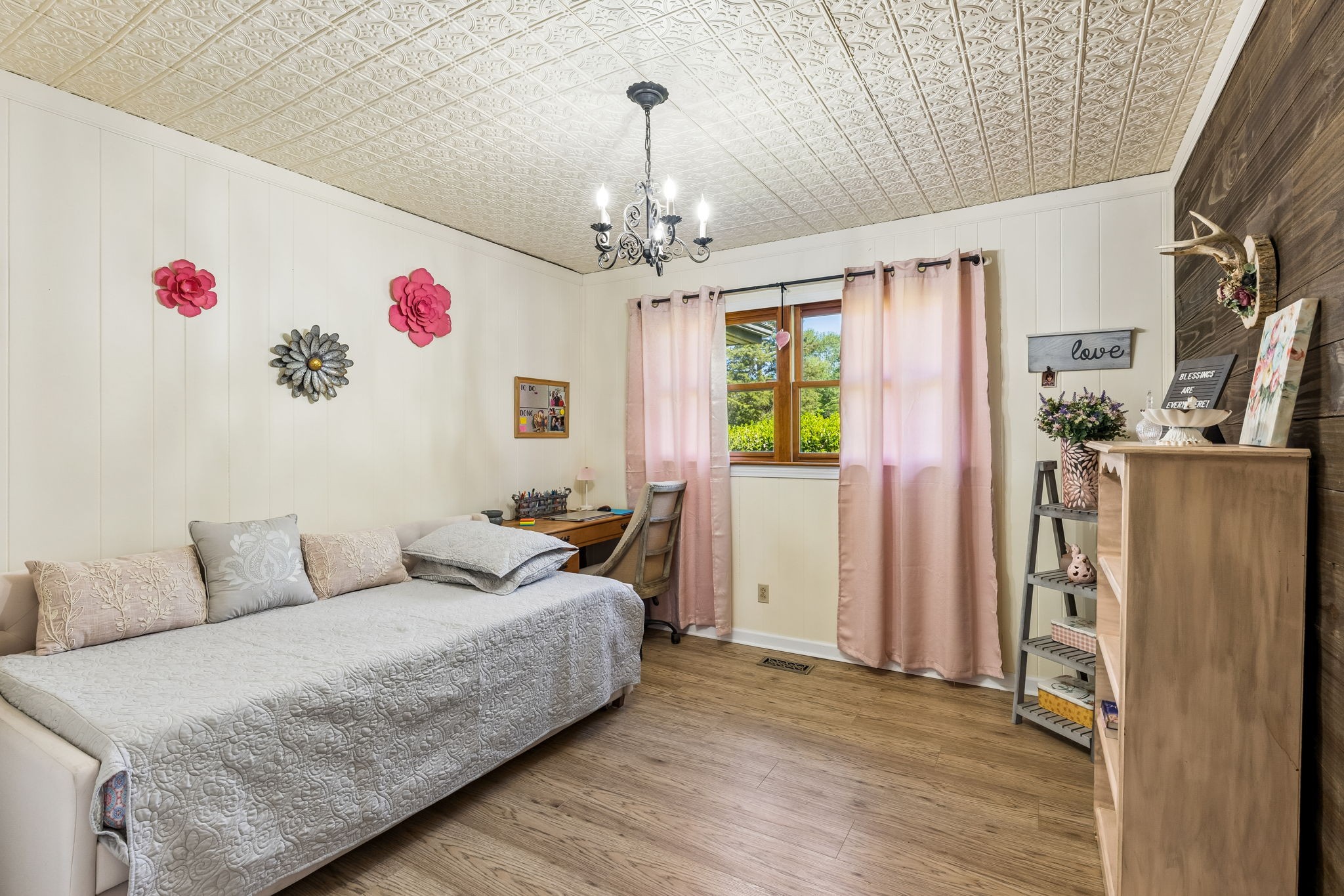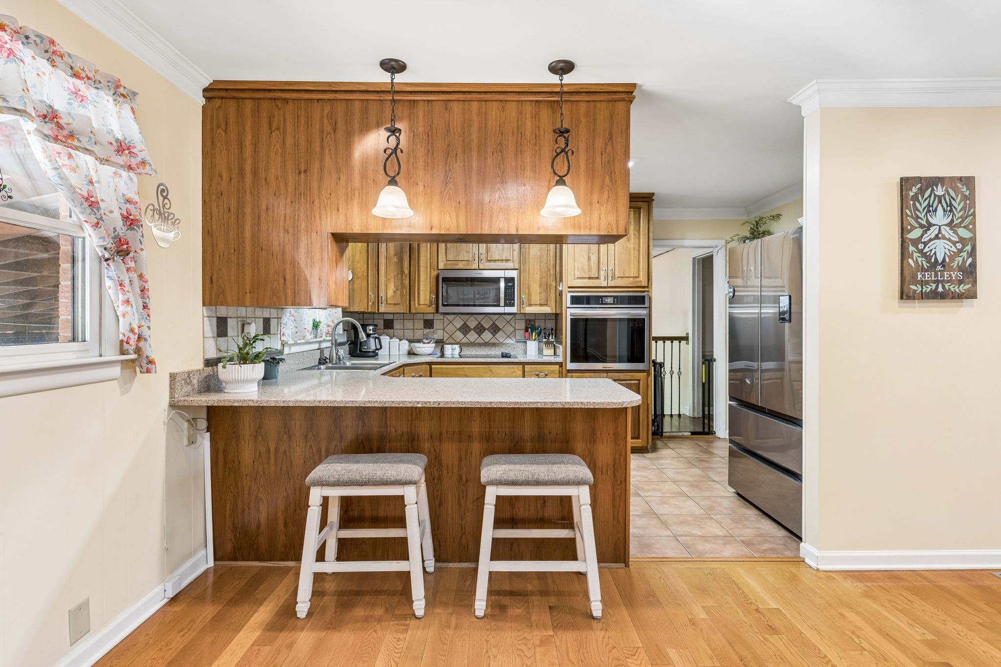 Great one-level floor plan featuring two primary suites located on opposite ends of the home—perfect for privacy and flexibility. This home offers abundant storage throughout, including an oversized utility room with a walk-in pantry. A heated and cooled basement provides additional storage space or could serve as a potential storm shelter. Hardwood and tile flooring run throughout the main areas, with carpet only in the secondary bedrooms. Great outdoor space with multiple covered areas. Large fenced in yard with oversized 2 car detached garage.